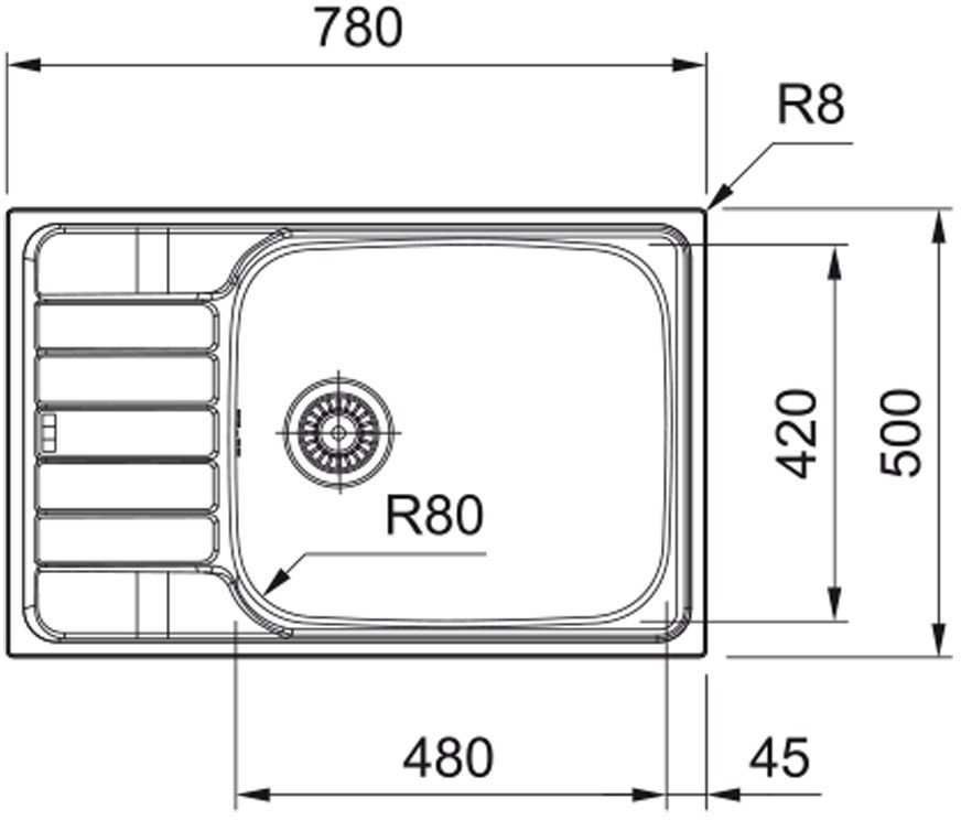 Розміри мийки:780 x 500