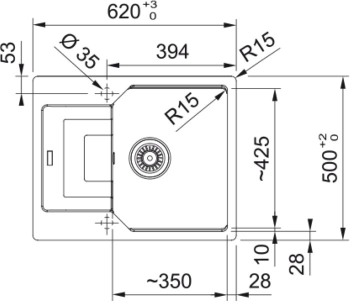 Franke Urban UBG 611-62 — компактна врізна кухонна мийка з фраграніту з крилом, розмірами 620х500 мм та глибиною чаші 220 мм. Оборотна конструкція дозволяє розташовувати крило зліва або справа.