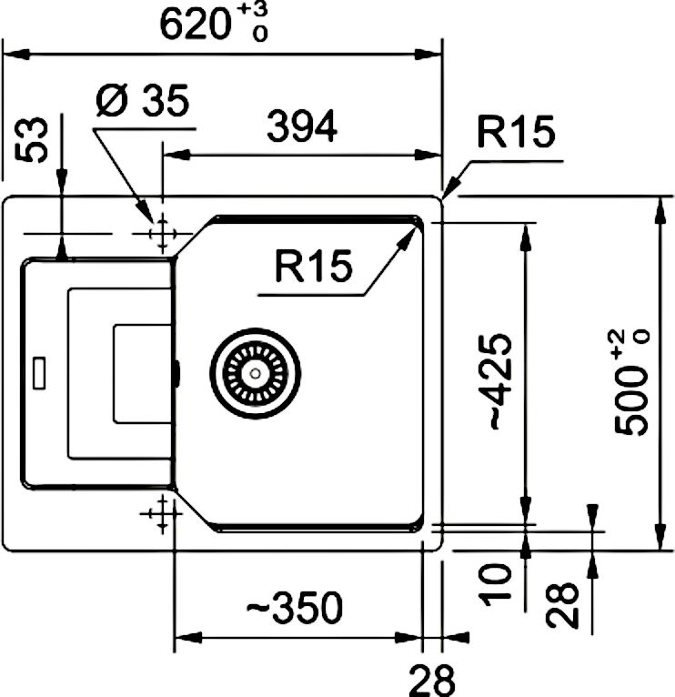 Кухонна мийка Franke Urban UBG 611-62 з фраграніту, сірого сланцевого кольору, має прямокутну форму, одну чашу (350x425 мм, глибина 220 мм) і оборотне крило. Встановлюється врізним способом у шафки від 45 см.