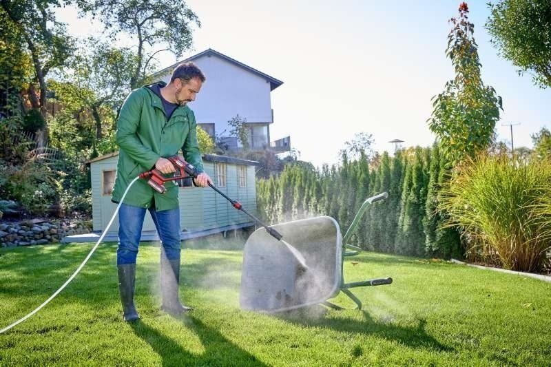 Акумуляторна мийка високого тиску лінійки Power X-Change system Einhell Hypresso 18/24 Li - Solo серії Expert забезпечує бездротову гнучкість для прибирання та поливу в саду та на терасі. Акумуляторна мийка є інструментом акумуляторної системи Power X-Change, де всі акумулятори та зарядні пристрої можна гнучко поєднувати. Акумуляторна мийка високого тиску працює під тиском до 24 бар і пропускною здатністю до 240 літрів води на годину. Таким чином, мийний пістолет Hypresso перетворюється на акумуляторну мийку високого тиску в зручному невеликому форматі.