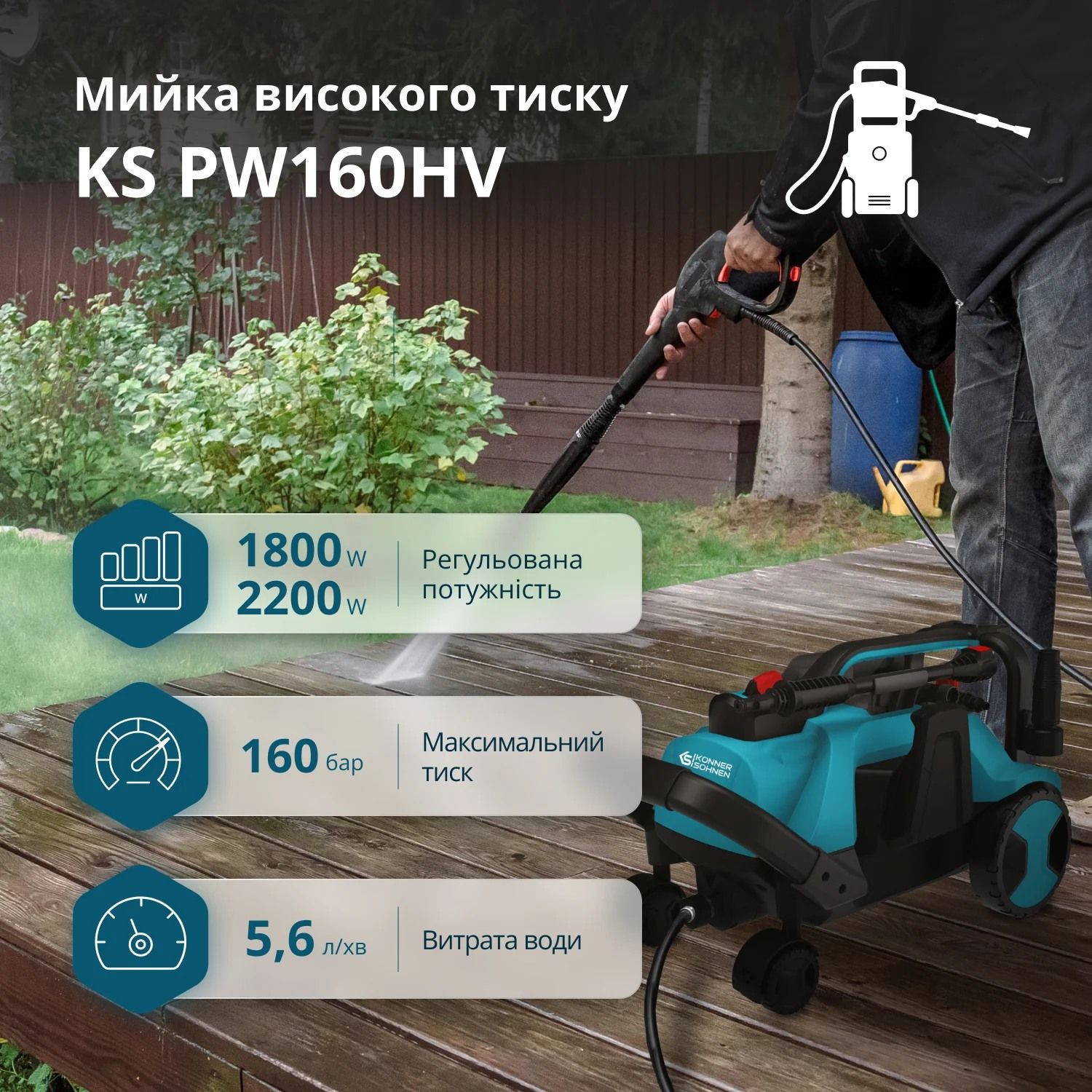 Мийка високого тиску Konner&Sohnen KS 1800-2200Вт 70-160бар 336л/год шланг 8м 10кг