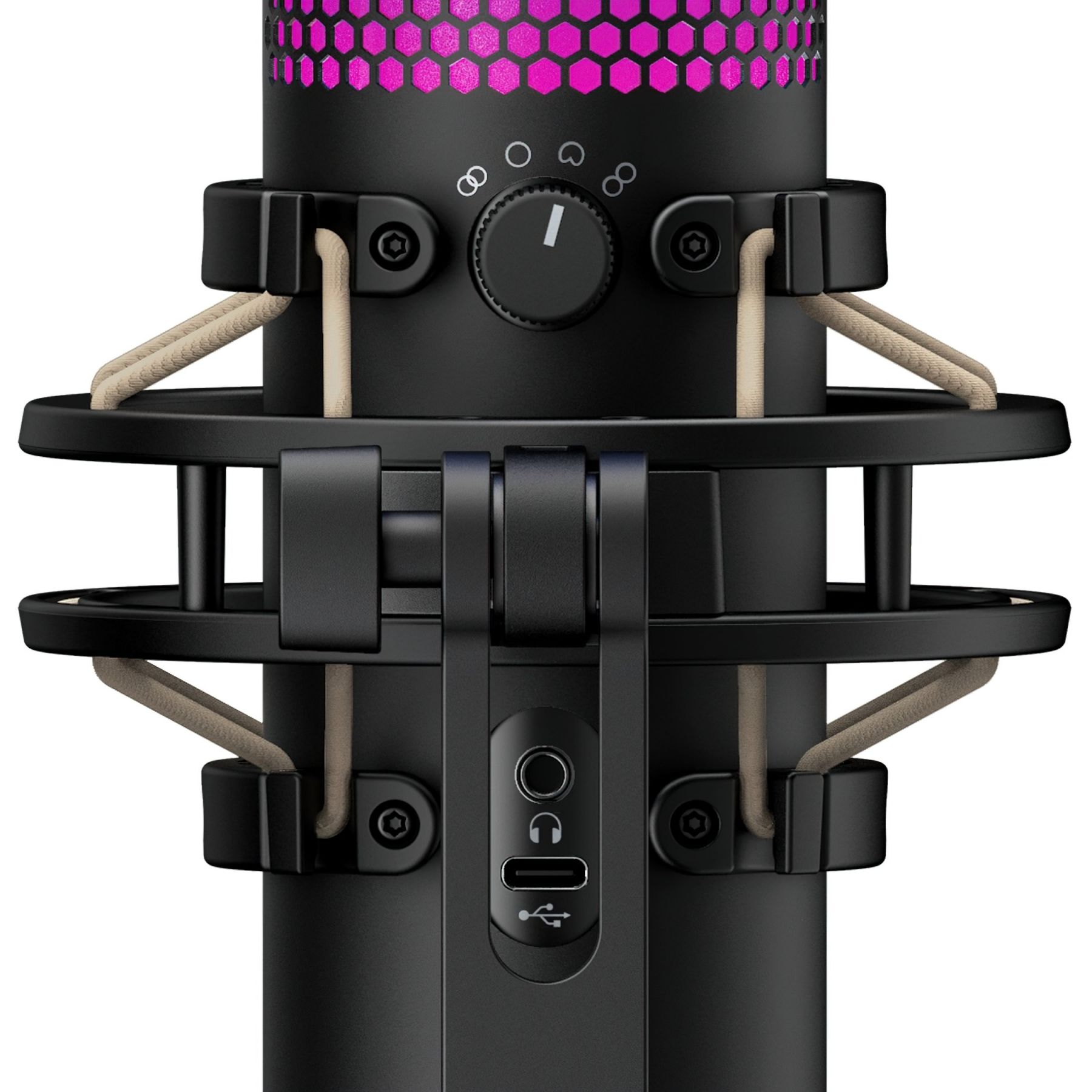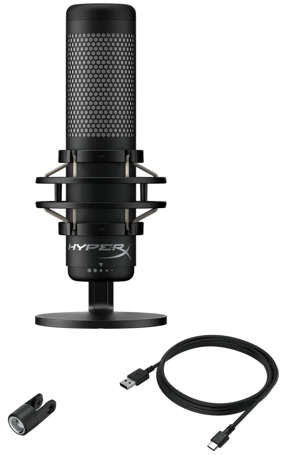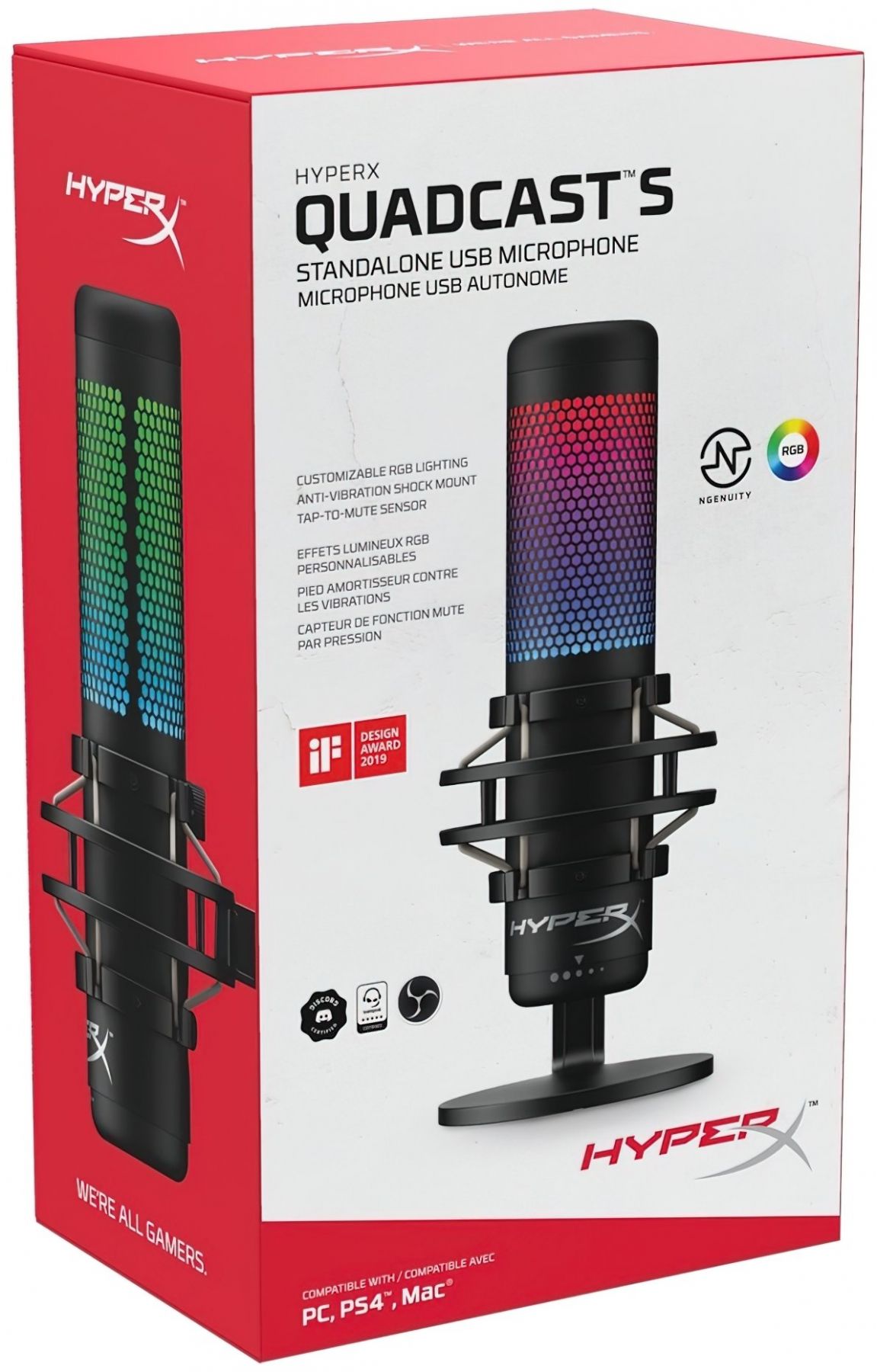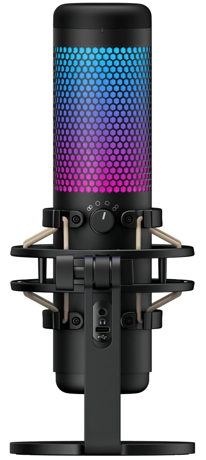 Мікрофон HyperX QuadCast S RGB Black 4P5P7AA. HyperX QuadCast S - це конденсаторний USB-мікрофон, який чудово звучить і має чудовий вигляд. Приголомшливе RGB-підсвічування і динамічні ефекти додадуть стилю і шарму будь-якому потоку або налаштуванню, а також налаштовуються за допомогою програмного забезпечення HyperX NGENUITY. QuadCast S - це універсальний мікрофон з антивібраційним протиударним кріпленням, що допомагає приглушити шум повсякденного життя, і вбудованим поп-фільтром для приглушення гучних звуків.