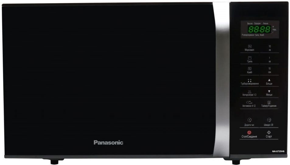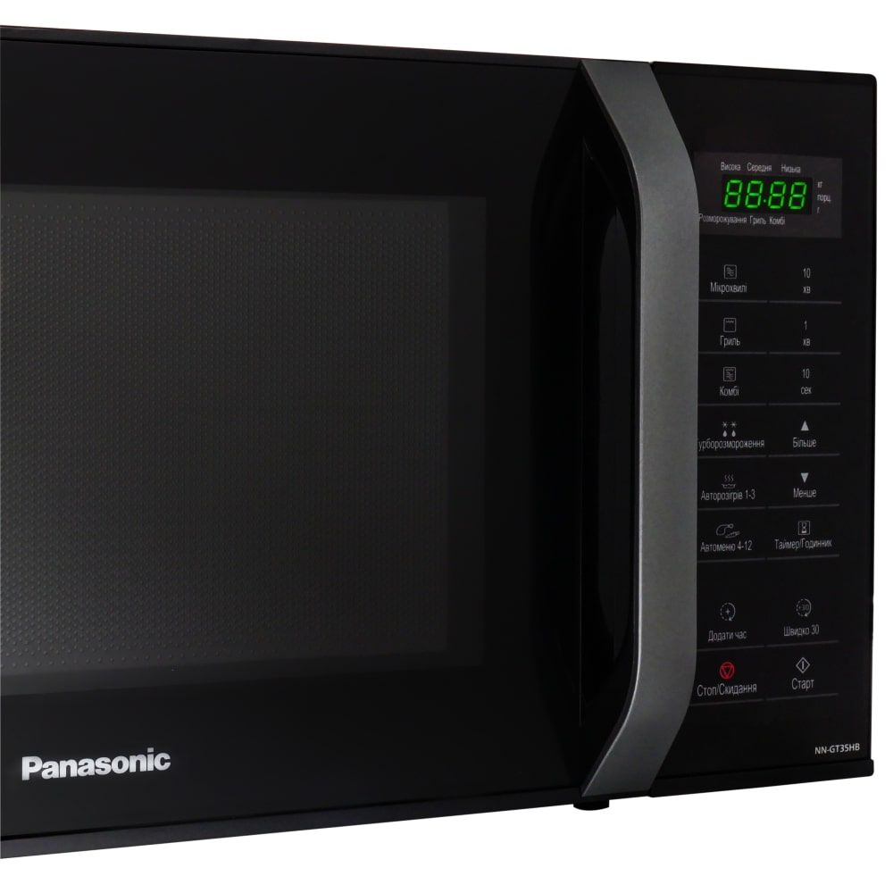 Мікрохвильова піч Panasonic NN-GT35HBZUE має стильний зовнішній вигляд і компактні габарити. Вибір необхідних режимів приготування, встановлення температури та часу здійснюється за допомогою інтуїтивно зрозумілої сенсорної панелі керування.