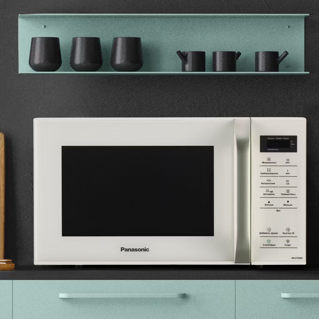 Мікрохвильова піч Panasonic NN-ST35MKZUE — це сучасна окремостояча модель для швидкого розігріву, розморожування та щоденного приготування страв. Об’єм 25 літрів і потужність 800 Вт забезпечують комфортне використання вдома або в офісі. Сенсорне керування та зручний РК-дисплей роблять користування простим і зрозумілим. 10 автоматичних програм, функція турборозморожування та Quick 30 значно економлять час. Елегантний корпус у кольорі білий / шампань гармонійно доповнює сучасну кухню.