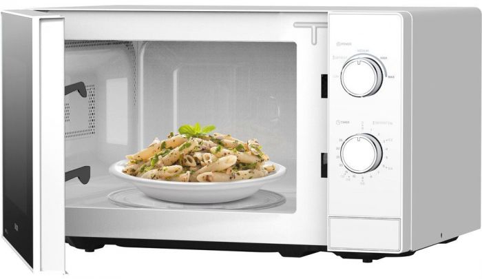 Мікрохвильова піч SMW 1718WH для легкого та швидкого розігріву та приготування їжі. Міцна внутрішня поверхня з емальованим покриттям для легкого чищення. Просте ручне керування забезпечується всього двома ручками керування.