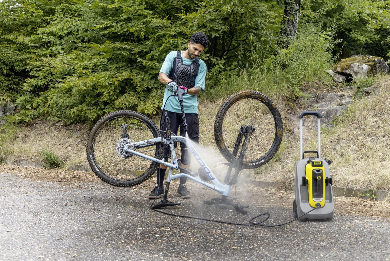 Особливості:телескопічна ручка, вбудований фільтр тонкого очищення води, забір води, колеса для зручності транспортування, зберігання аксесуарів на мийці, дисплей Real Time для контролю рівня заряду, фіксація пістолета і трубок на баку