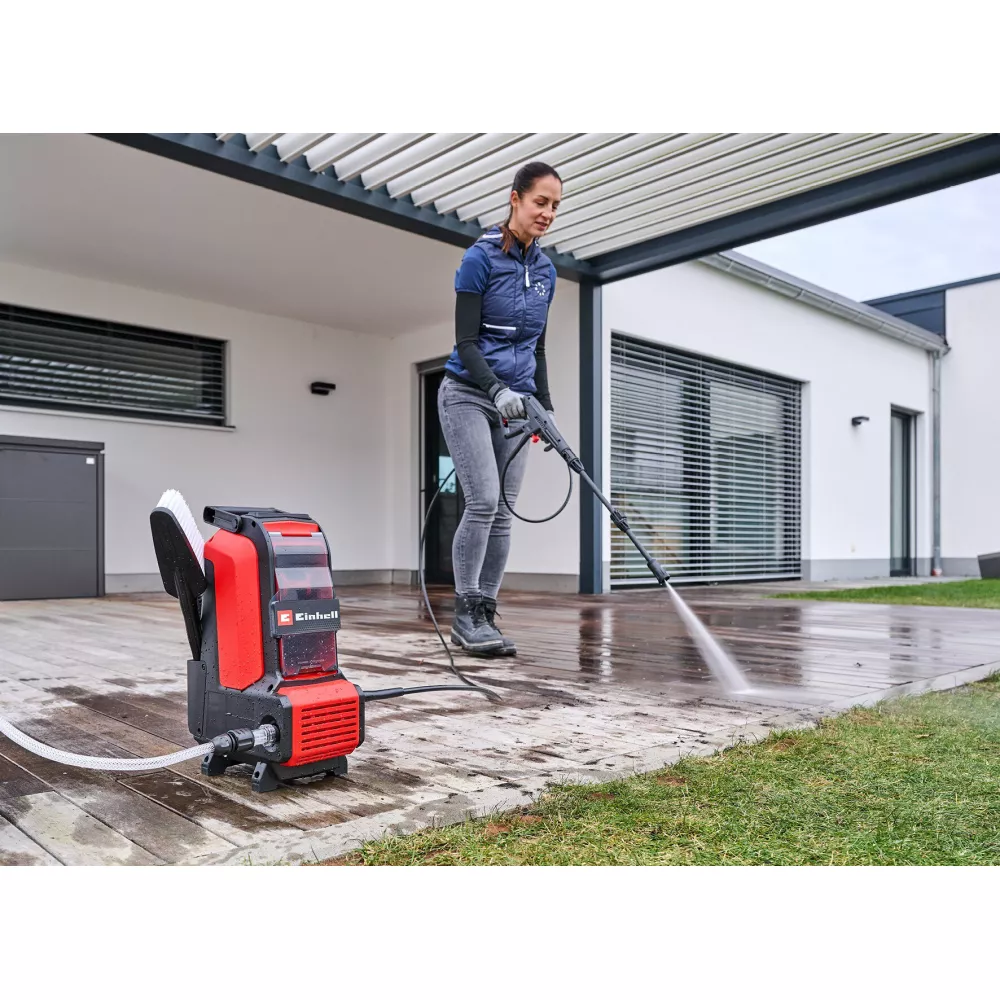 Особливості:живлення від акумулятора, водяний фільтр, безщітковий двигун, самовсмоктування, регулювання тиску води, система Quick Connect, захист від вологи, захист IPX5, подача миючого засобу через: пінна насадка, вбудована сітка для зберігання, ECO режим, автоматична система зупинки, зберігання аксесуарів на мийці, ручка для транспортування, функція всмоктування / використання з ємностями