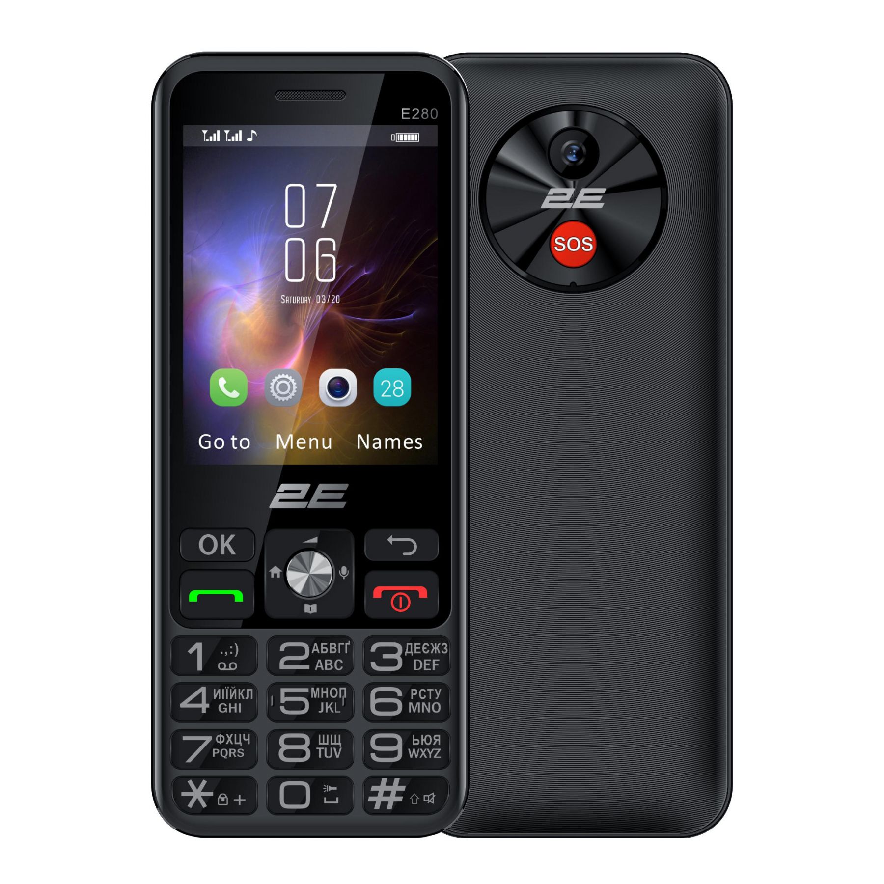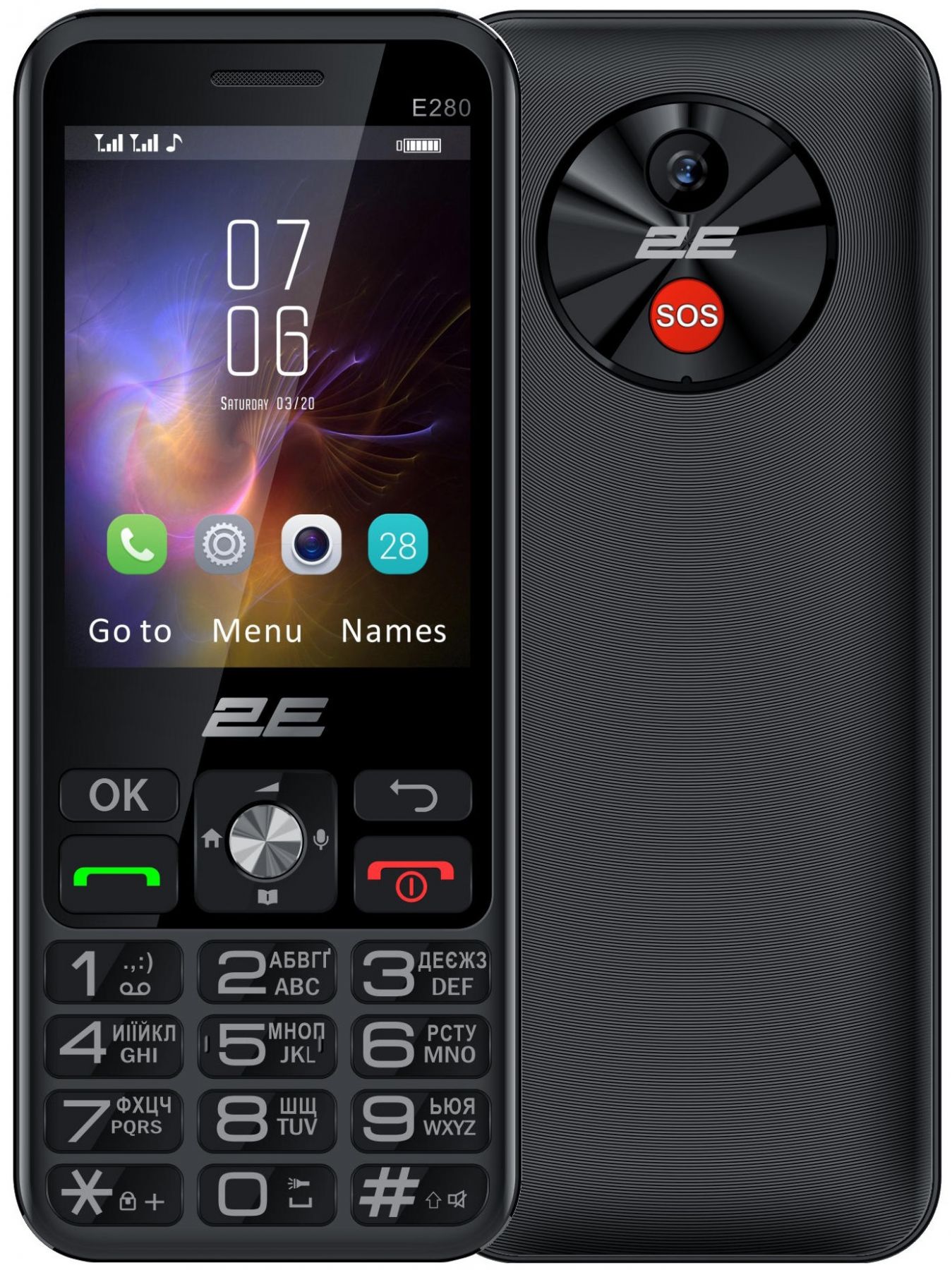 Мобільний телефон 2E E280 SENIOR отримав таку назву завдяки продуманому дизайну з великими екраном і клавішами та зручною Type-C зарядкою, призначеною спеціально для літніх людей.