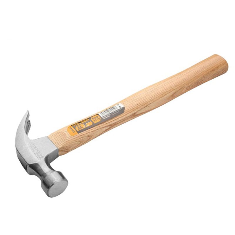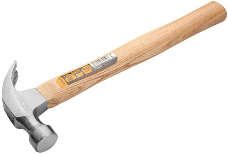Молоток Tolsen призначений для забивання/висмикування цвяхів. Цей різновид ручного інструменту широко застосовується в роботі столярами і теслями. Головка з бойком круглої форми виготовлена з кованої інструментальної сталі спеціального гартування, що надає виробу міцність та подовжує термін його служби. Із захисно-декоративною метою поверхня відполірована.