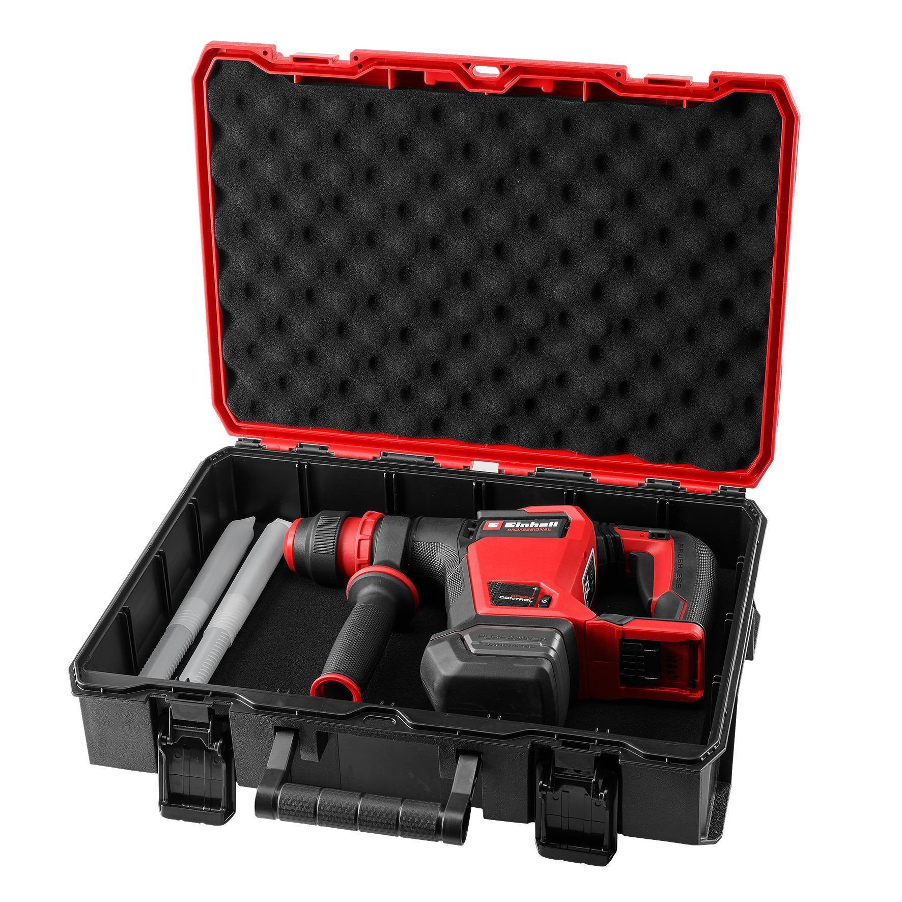 Einhell Professional TP-DH 18/4 Li BL-Solo — компактний акумуляторний відбійний молоток для легких демонтажних робіт і точного довбання. Енергія удару 4,0 Дж, безщітковий двигун і система Power X-Change забезпечують мобільність без мережі. SDS-Plus із напівавтоматикою пришвидшує заміну зубил, а 16-позиційне встановлення дає змогу точно задати кут.