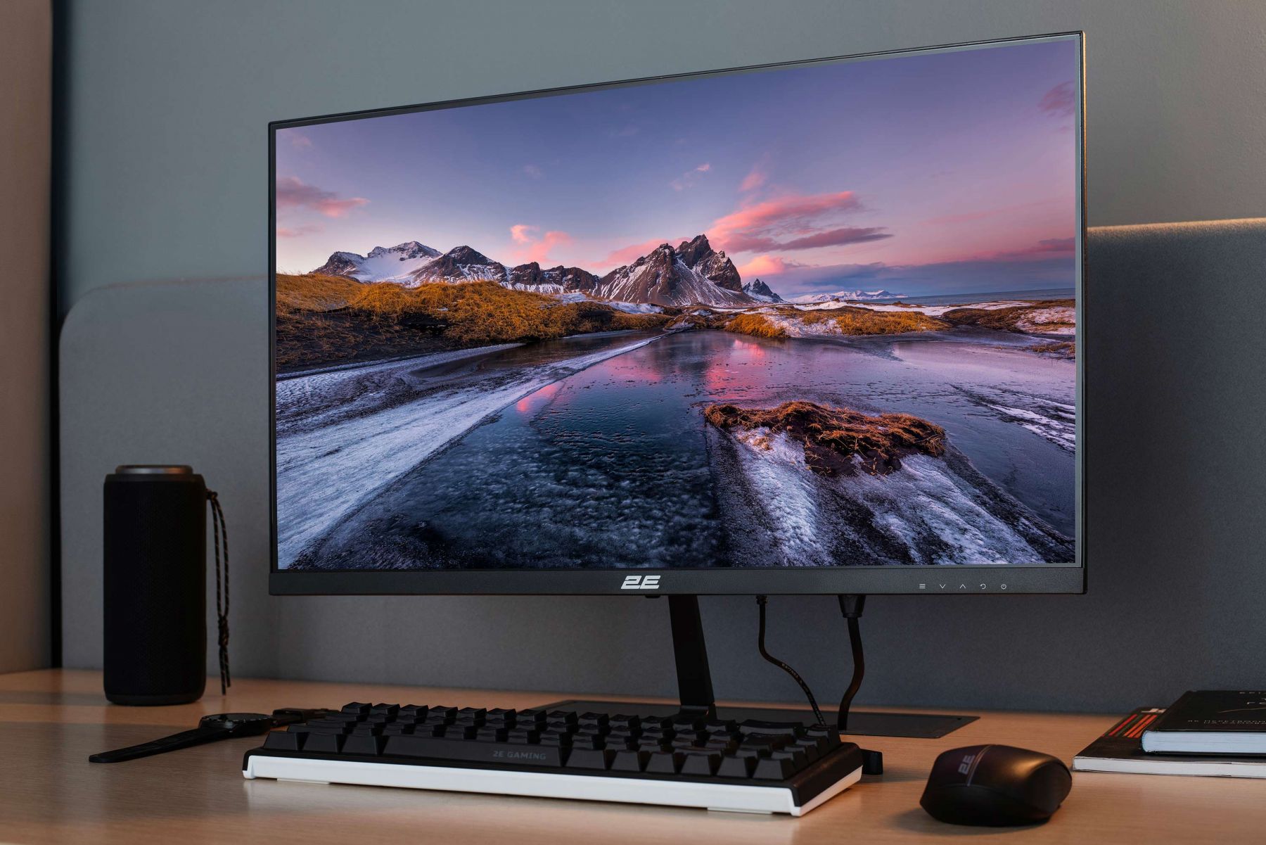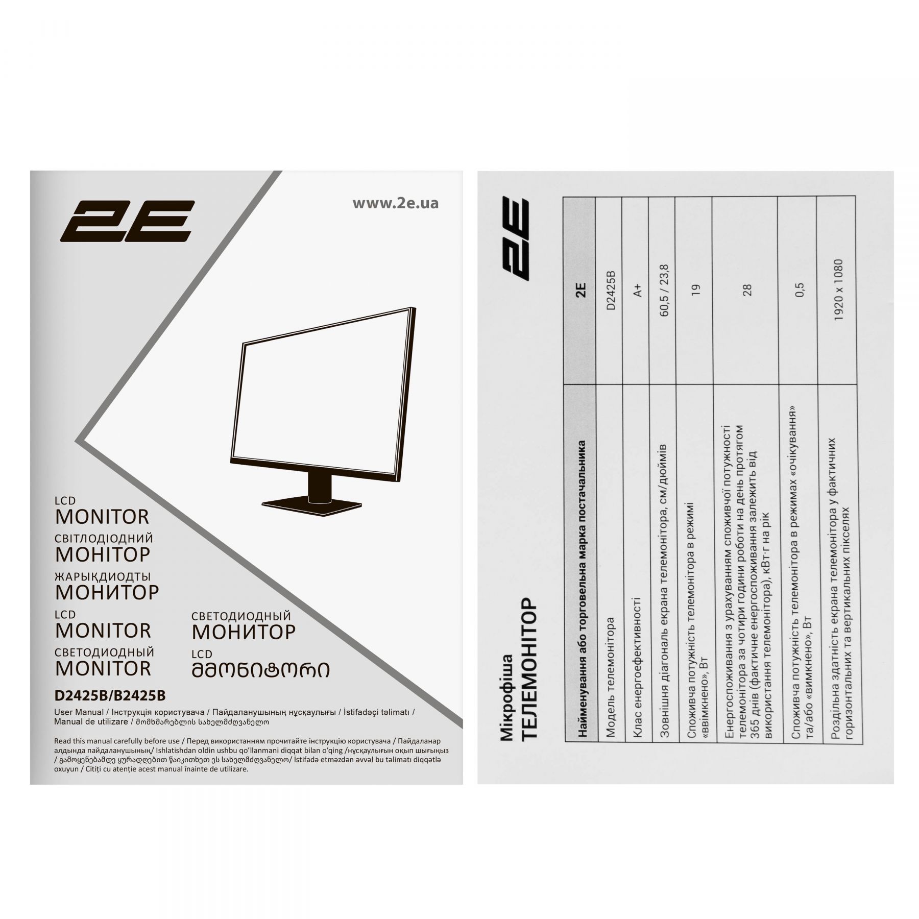 Монітор 2E D2425B діагоналлю 23,8″ з інноваційною IPS-матрицею і роздільною здатністю 1 920 × 1 080 забезпечує насичене та деталізоване зображення. Частота оновлення 100 Гц і швидкість відгуку 5 мс роблять відображення плавним, що особливо важливо для динамічного контенту. Яскравість 250 кд/м² є запорукою відтворення яскравої картинки без спотворень. Завдяки кутам огляду 178°/178° зображення залишається чітким із будь-якого ракурсу, а можливість регулювання нахилу монітора (15°/5°) забезпечує комфорт під час роботи. Вбудовані динаміки, HDMI, D-Sub і можливість настінного монтажу (VESA 75 × 75).
