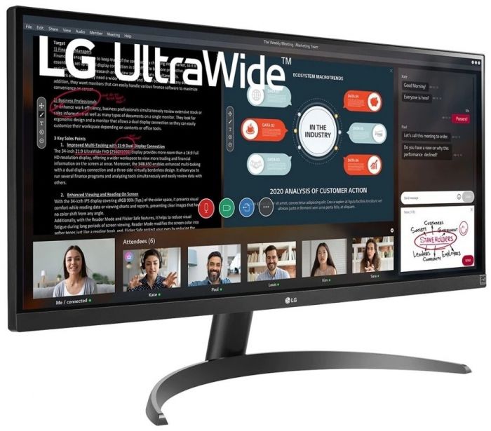 Домашнє обладнання на рівні офісного. Монітор UltraWide Full HD (2560x1080) передбачає на 33% більше місця на екрані по ширині, ніж дисплей з роздільною здатністю FHD (1920x1080), забезпечуючи співвідношення сторін 21: 9.
