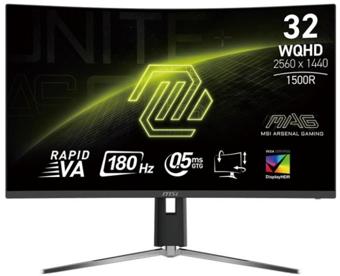 Великий 31.5-дюймовий вигнутий ігровий монітор із VA-матрицею та кривизною 1500R забезпечує глибоке занурення у гру. Роздільна здатність WQHD, частота оновлення 180 Гц і швидкий відгук 0.5 мс гарантують плавну картинку без розривів. Підтримка AdaptiveSync оптимізує геймплей, а яскравість 400 ніт і DisplayHDR 400 забезпечують насичені кольори.