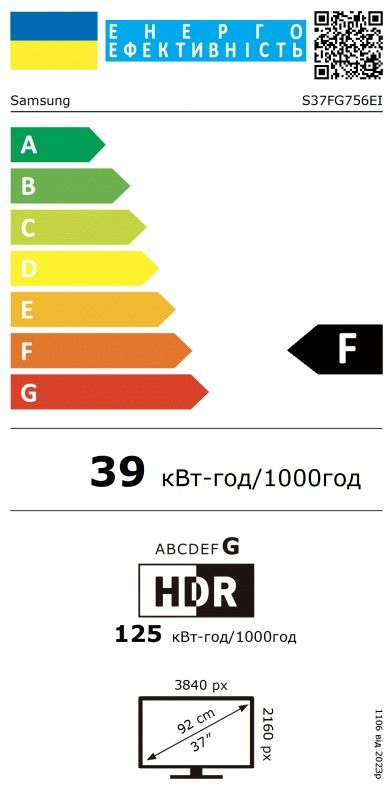 Монітор Samsung 37" G7 G75F 4K HDMI, DP, USB, VA, 3840x2160, 165Hz, 1ms