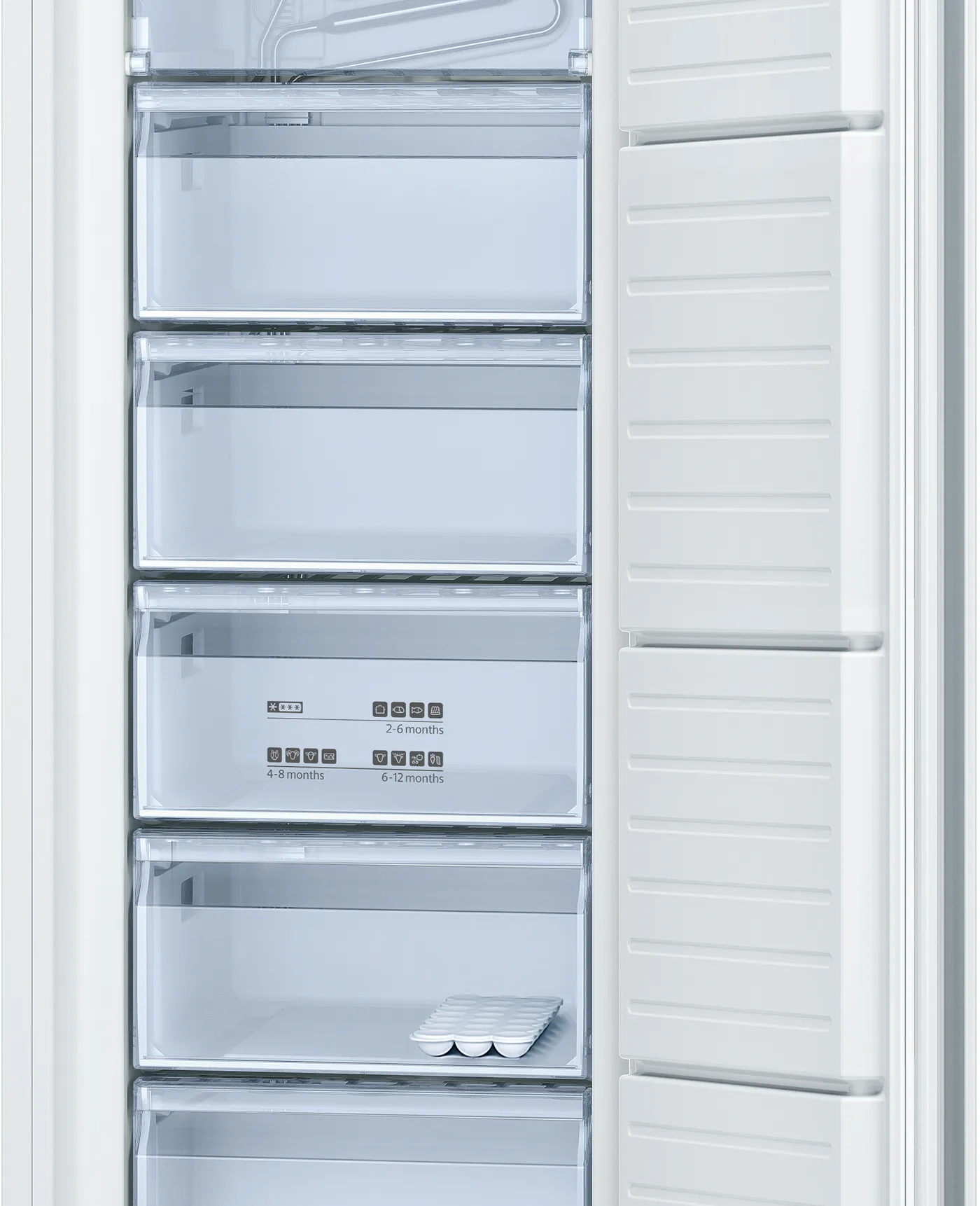 Морозильна камера Bosch GSV24VWE0N з об’ємом 182 л забезпечує ефективне зберігання продуктів. Модель класу енергоефективності E працює тихо (42 дБ) і оснащена 5 ящиками та зоною з відкидною кришкою. Має функцію швидкого заморожування й можливість перенавішування дверцят.
