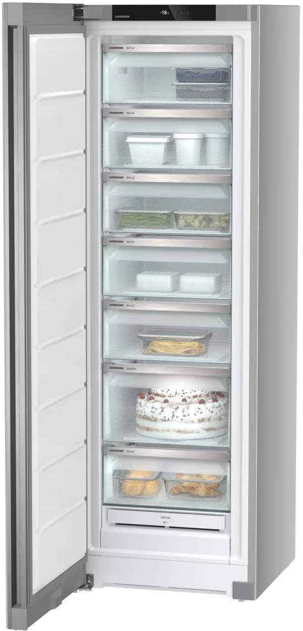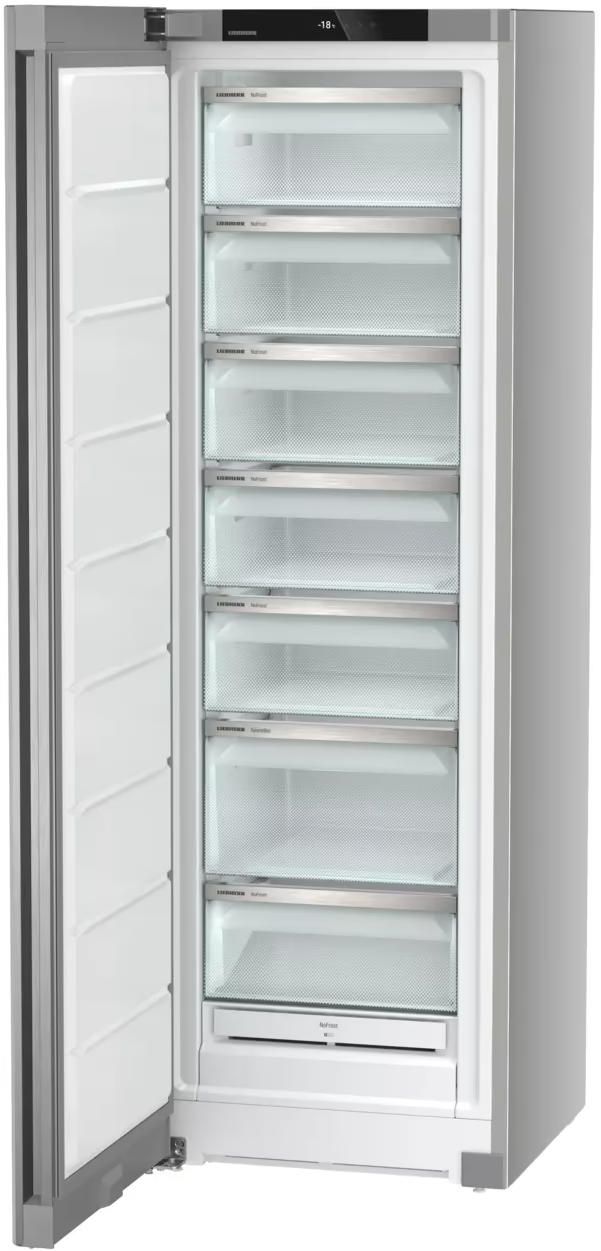 Морозильна камера Liebherr SFNsfd 5227 Plus виконана в окремостоячому форматі та орієнтована на містке зберігання продуктів. Корисний об’єм 271 л дає змогу впорядкувати запаси без перевантаження відділень. Система NoFrost усуває накопичення інею та спрощує догляд. Сенсорне керування з внутрішнім дисплеєм забезпечує точний контроль температури. Сталеві двері в сірому кольорі підкреслюють стриманий сучасний вигляд.