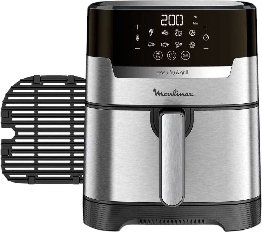 Мультипіч Moulinex EasyFry&Grill Digital з потужністю 1550 Вт та чашею 4,2 л забезпечує приготування на 6 порцій. Технологія Extra Crisp з циркуляцією потоків гарячого повітря та робочою температурою 80-200 °C. Сенсорне керування з 8 автоматичними програмами: картопля фрі, курка, нагетси, риба, м'ясо, піца, овочі, десерт, плюс 2 ручних режими аерофритюр та гриль.