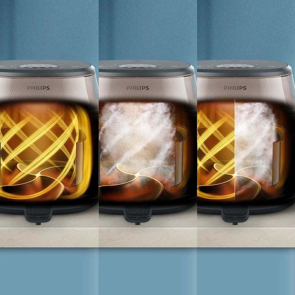 Особливості:Застосунок HomeID з рецептами, Керамічне покриття чаші, функція SteamFry, EasySlide Rail - безпечне висування кошика, Технологія Steamclean