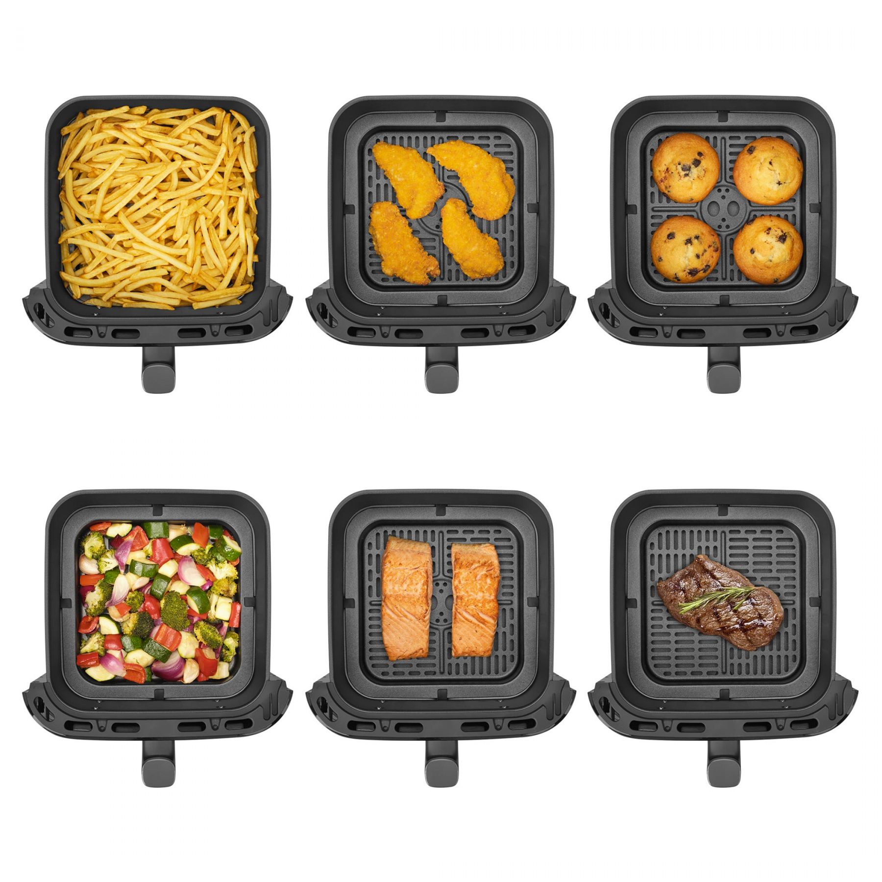 Особливості:Оглядове вікно, автоматичне вимкнення, Налаштування температури, Система смаження без олії, Таймер на 60 хвилин, Ручне регулювання часу та температури приготування, Функція СТРУСИТИ, яка нагадує вам сигналом, коли їжу потрібно перемішати