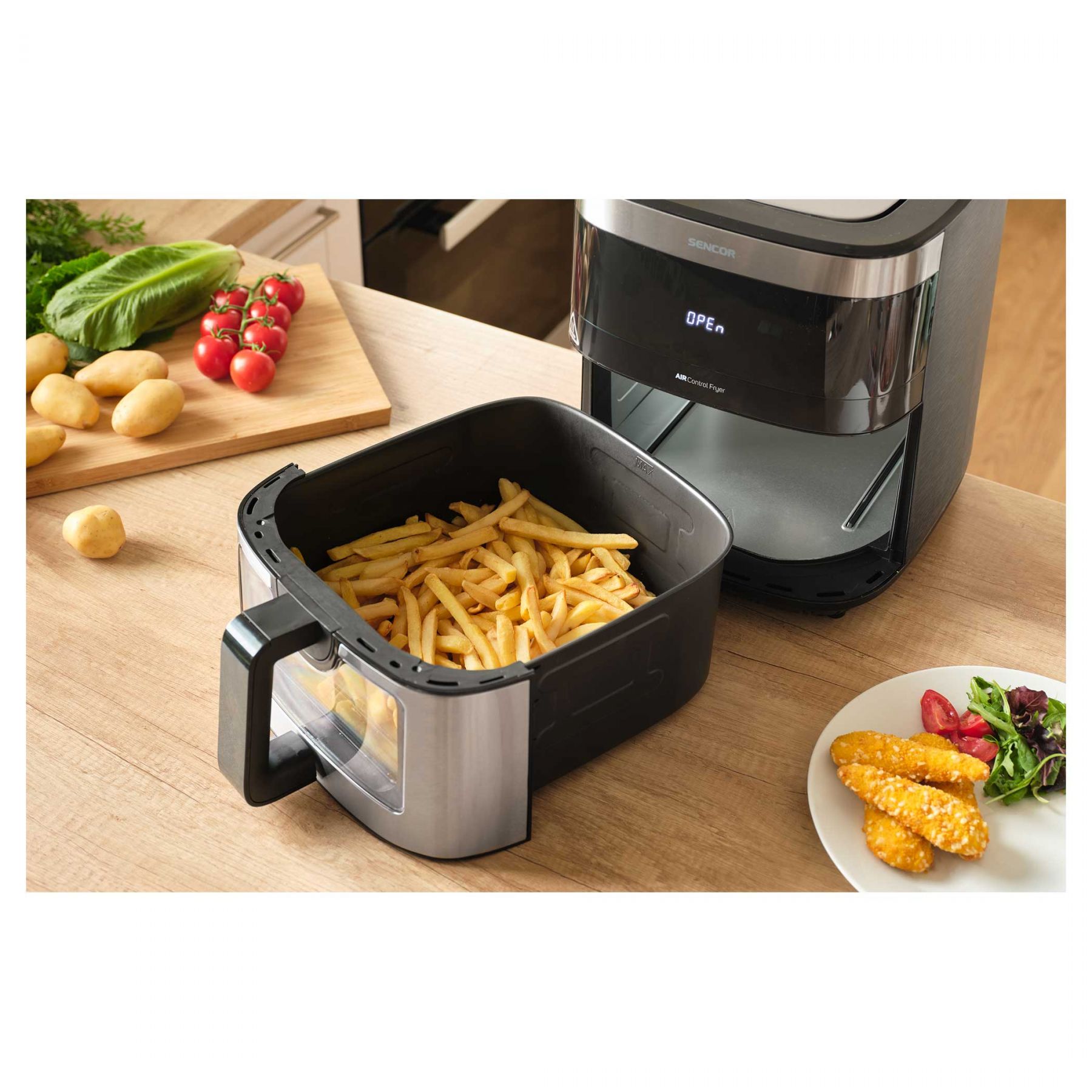 Особливості:Оглядове вікно, Відкладений запуск, Система смаження без олії, Знімна решітка для кошика з антипригарним покриттям для легкого чищення, Таймер на 60 хвилин, Функція «Струшування»