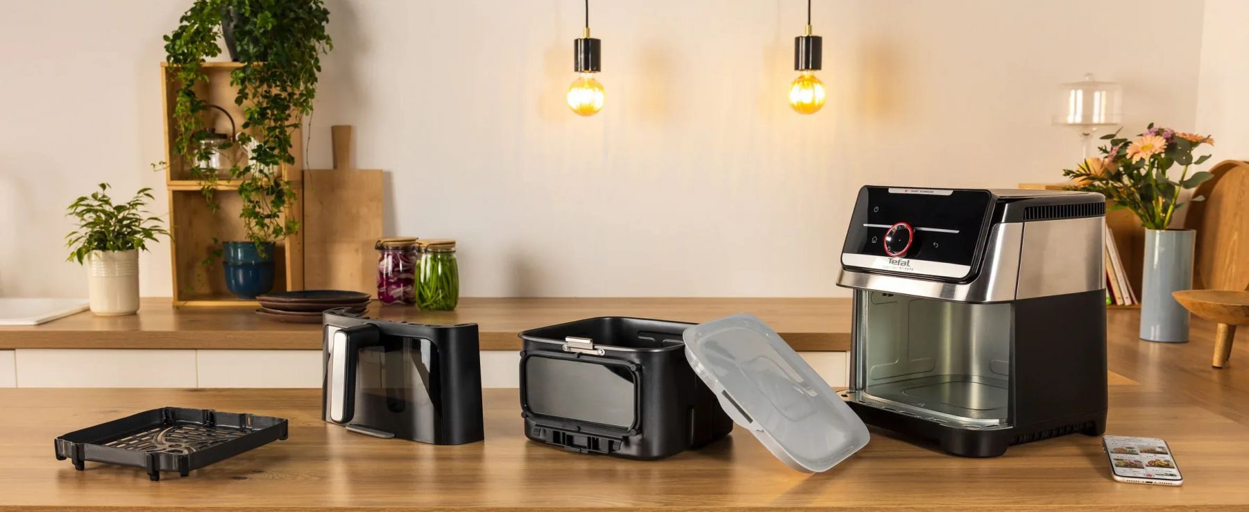 Особливості:Таймер відстрочки старту, Регулювання температури, Оглядове вікно, Знімні частини можна мити в посудомийній машині, Технологія Extra Crisp, Звуковий сигнал після завершення роботи, Система Easy Clean & Store, Silent Technology - надзвичайно тиха робота приладу, Технологія Grill, Ексклюзивний додаток "My Tefal", Можливість увімкнути/вимкнути внутрішнє освітлення, 2 рівня регулювання по висоті решітки для стікання жиру, Інтелектуальна система Smart Assist