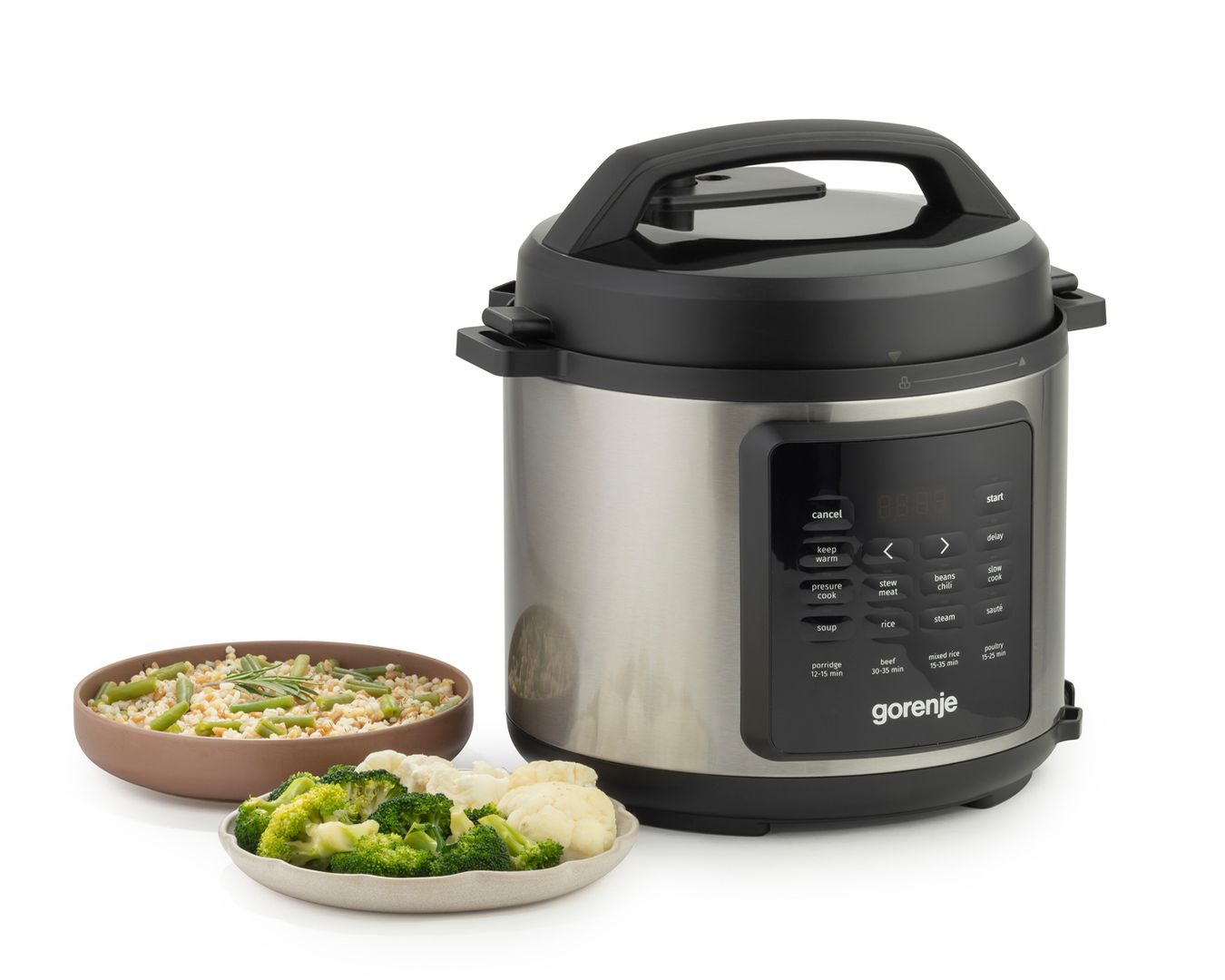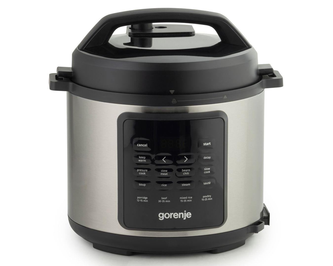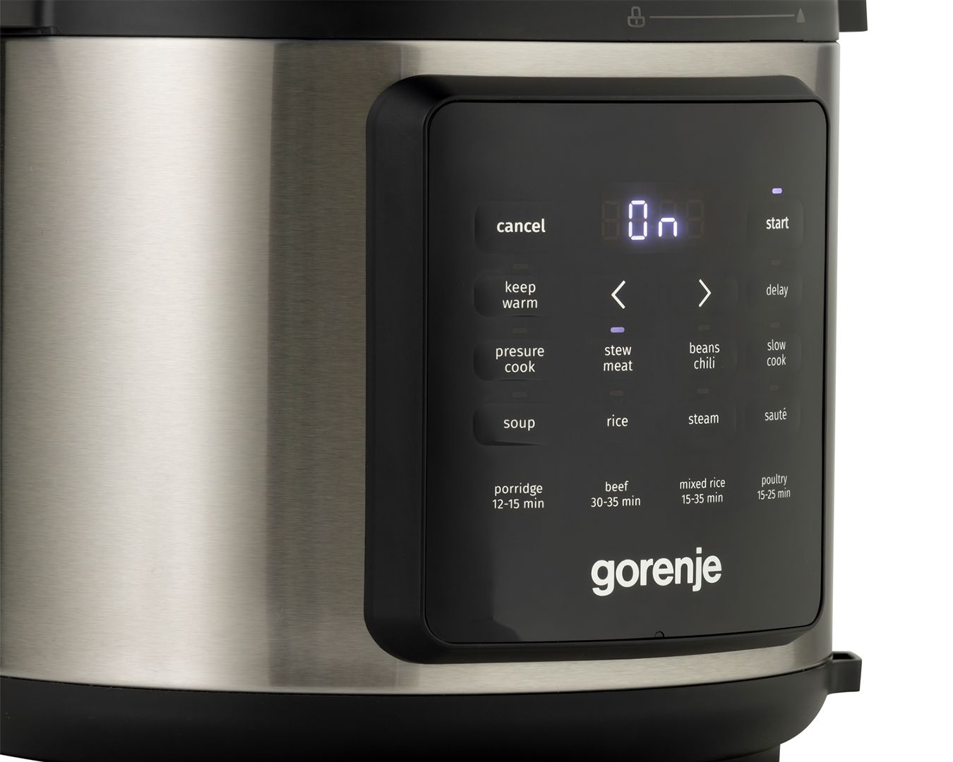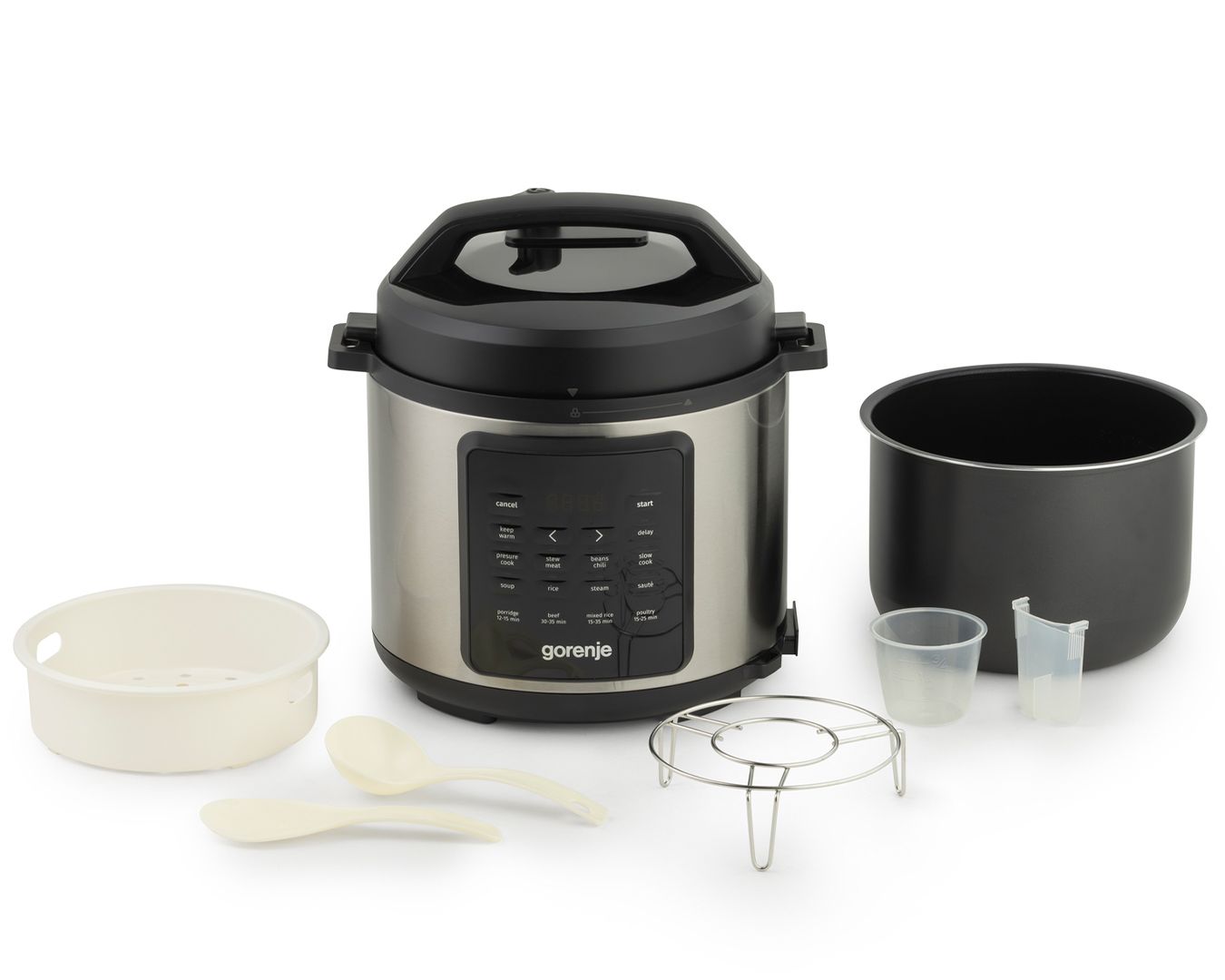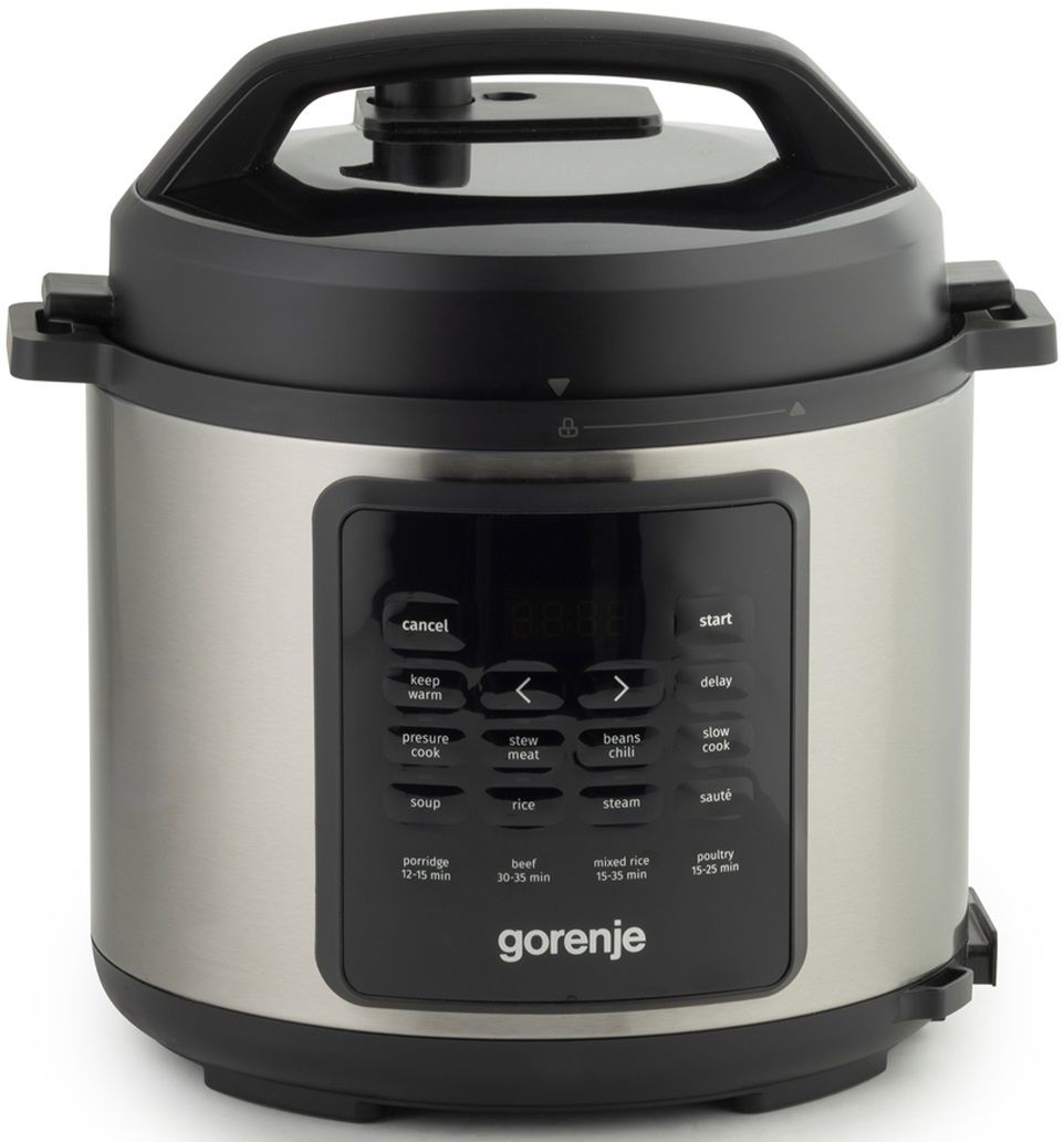 Мультиварка-скороварка Gorenje, 1000Вт, чаша-6л, електронне керув., 8 програм, метал/пластик, чорний-нерж
