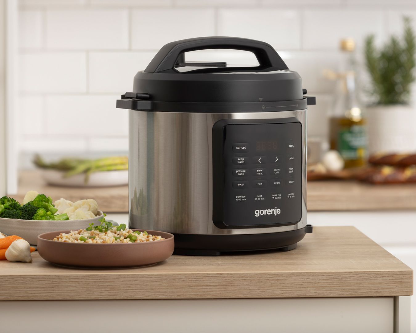 Мультиварка-скороварка Gorenje потужністю 1000 Вт поєднує функції мультиварки та скороварки для швидкого й зручного приготування страв. Пристрій має 8 програм, функцію відкладеного старту, налаштування часу та підтримання тепла. Завдяки знімній кришці та паровій корзині користування стає ще простішим. Сучасний дизайн із пластиково-металевим корпусом гармонійно впишеться на будь-якій кухні.
