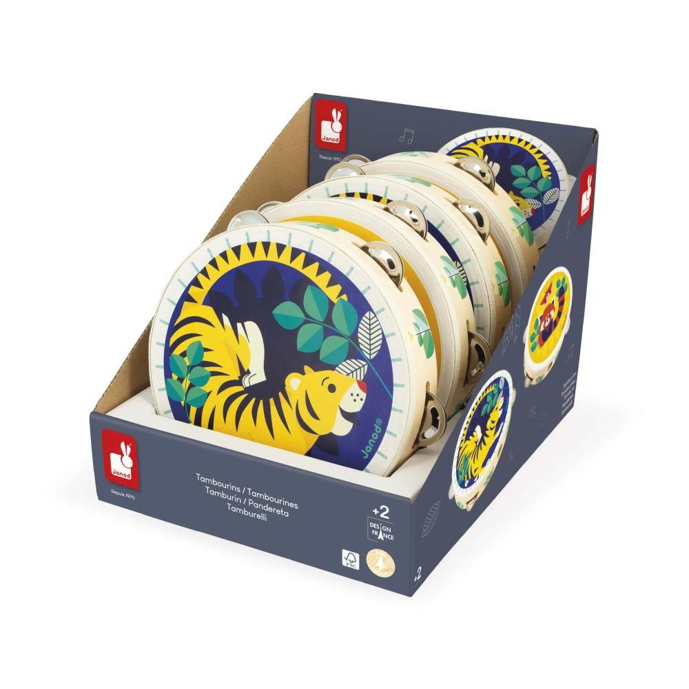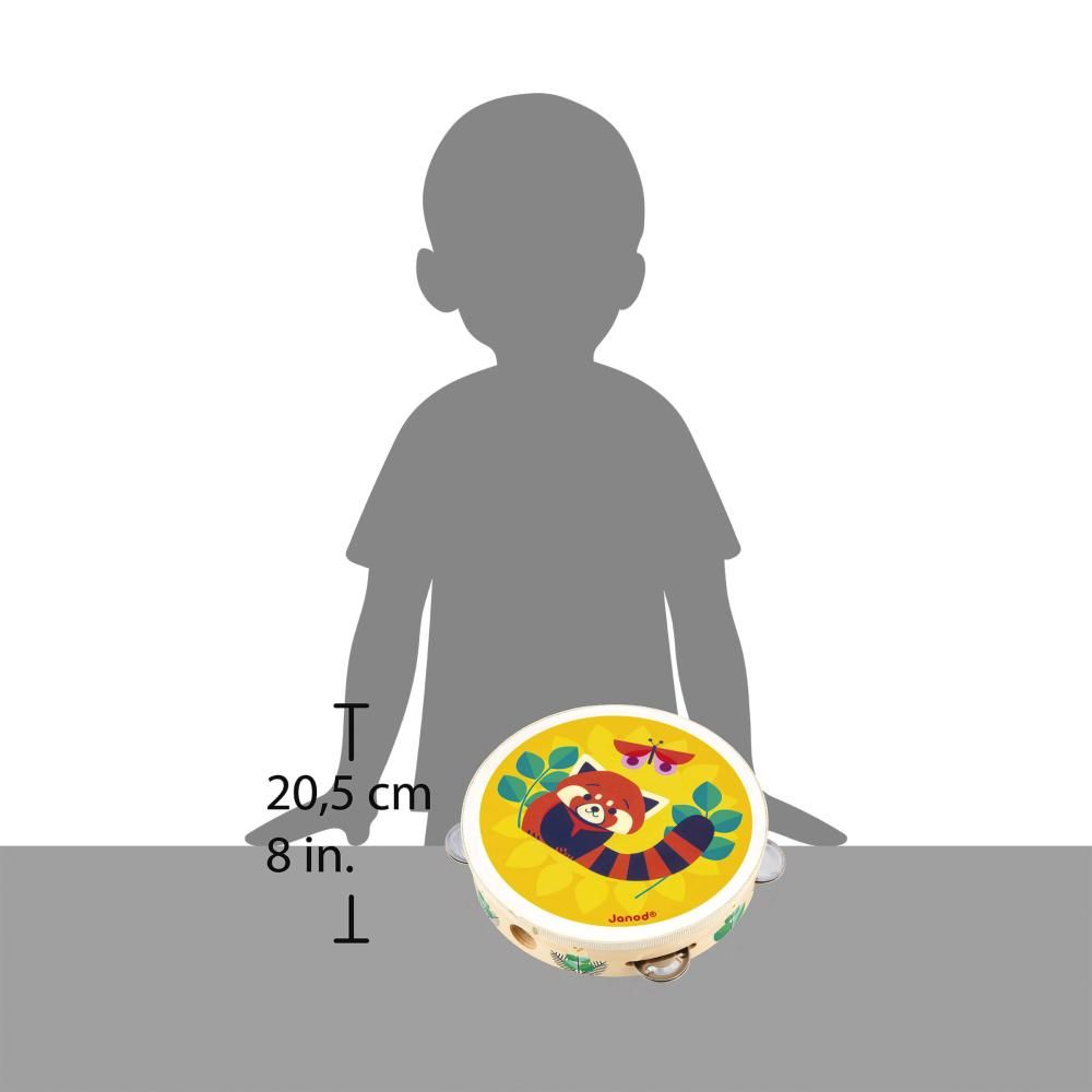 Бубон Janod – барабанний музичний інструмент із цікавим оригінальним звучанням. Інструмент французького виробника іграшок Janod. Виготовлений із дерева; матеріал приємний на дотик, гладенько відшліфований. У прорізах дерев’яного обруча металеві тарілочки-брязкальця. Інструмент призначений для дітей від трьох років.