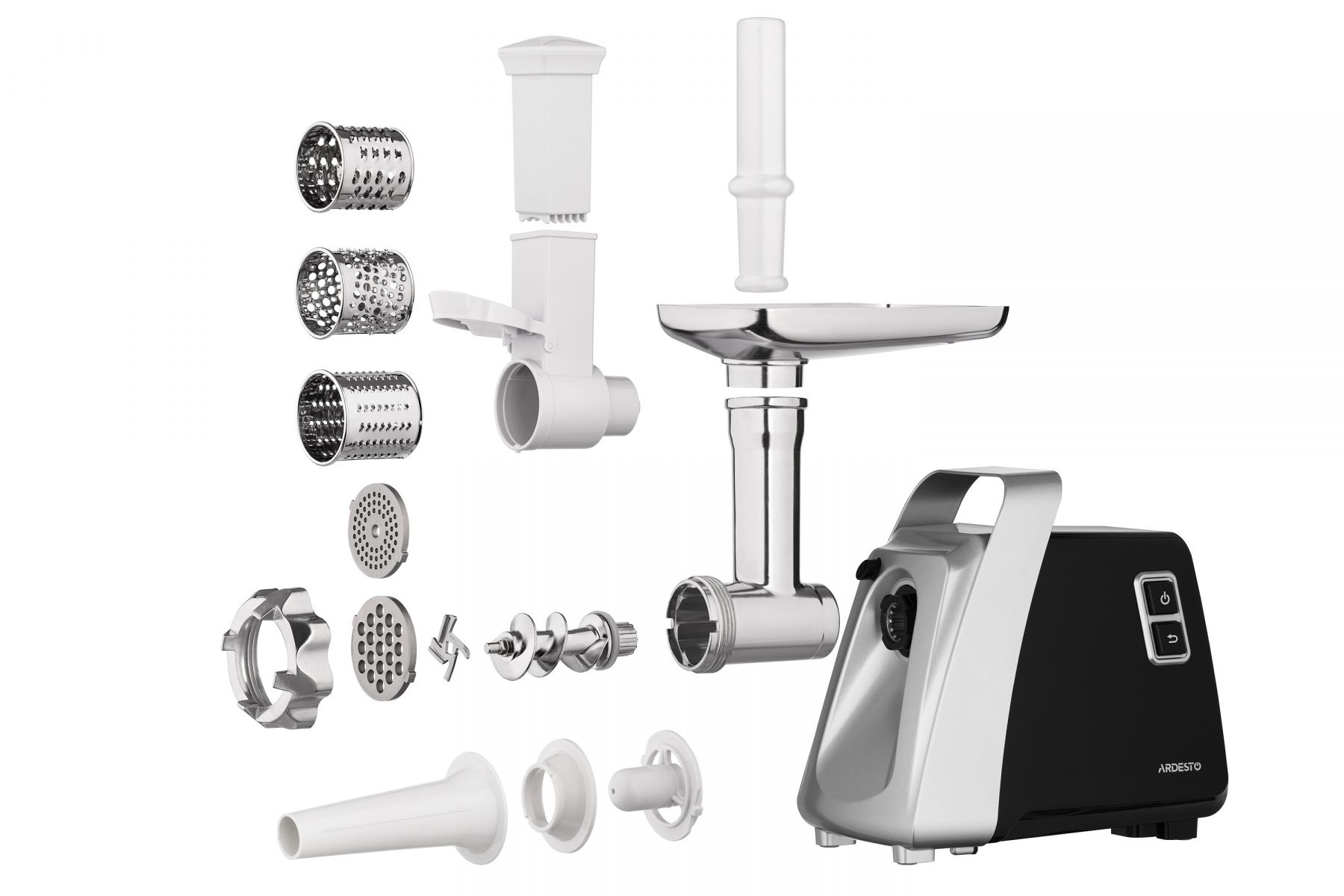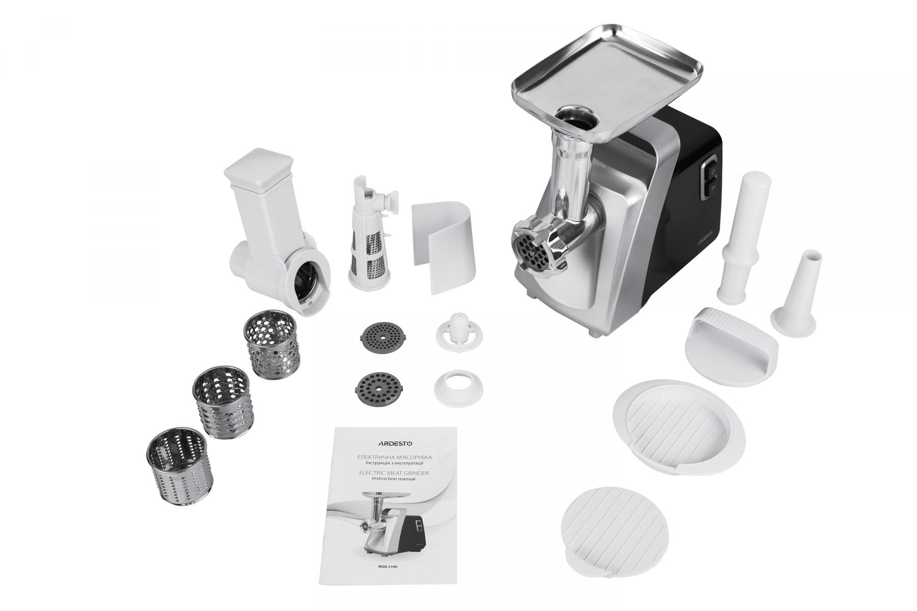 М'ясорубка Ardesto MGK-2100 - 2100 Вт/2,0кг-хв/4 тертки/томат. соковит./бургер-прес/срібл.+чорн.