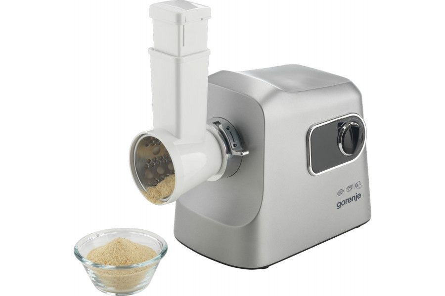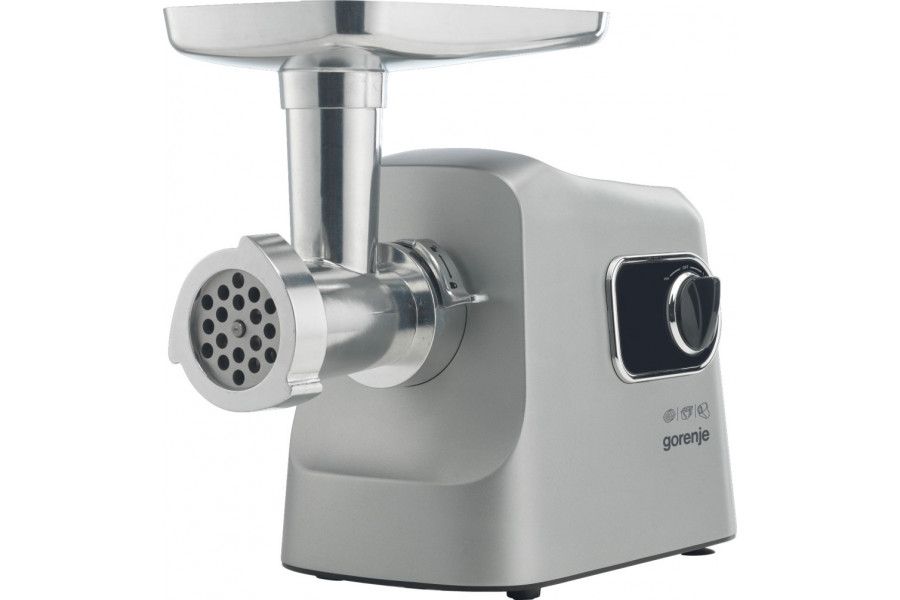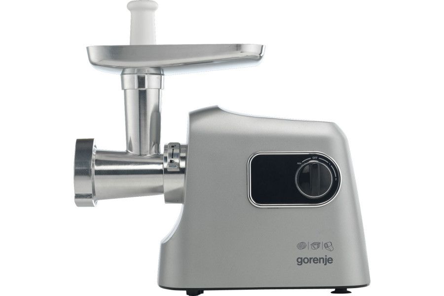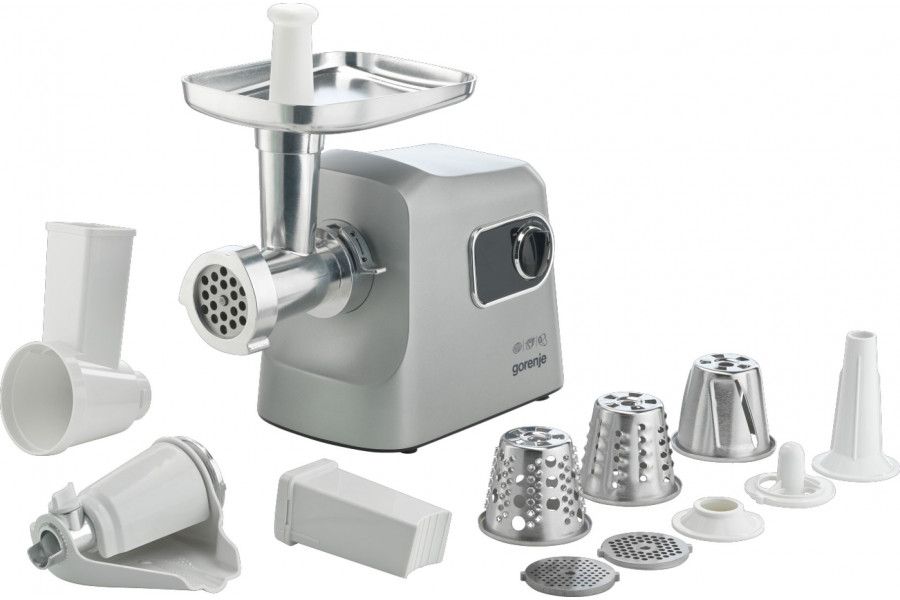 М'ясорубка Gorenje, 2500Вт, 2.8кг/хв, 3 решітки, насадка для ковбас, кеббе, шнековий соковидавлювач, 3 терки, пластик/метал, нерж