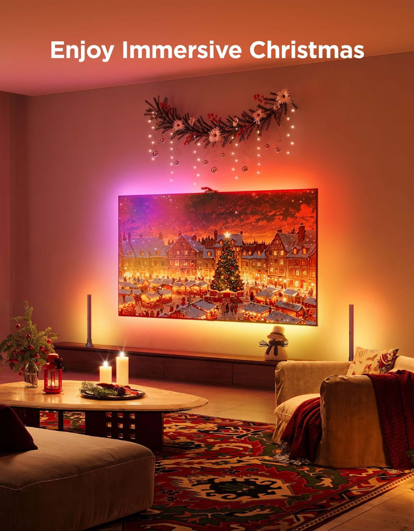 Особливості:Wi-Fi + Bluetooth, підтримує синхронізацію DreamView, 16-бітні світлодіодні чіпи RGBWWIC, технологія LuminBlend, технологія потрійної камери HDR з обробкою 1080p/30fps, регулювання настрою на основі штучного інтелекту, сумісність із ТБ: 55-65"