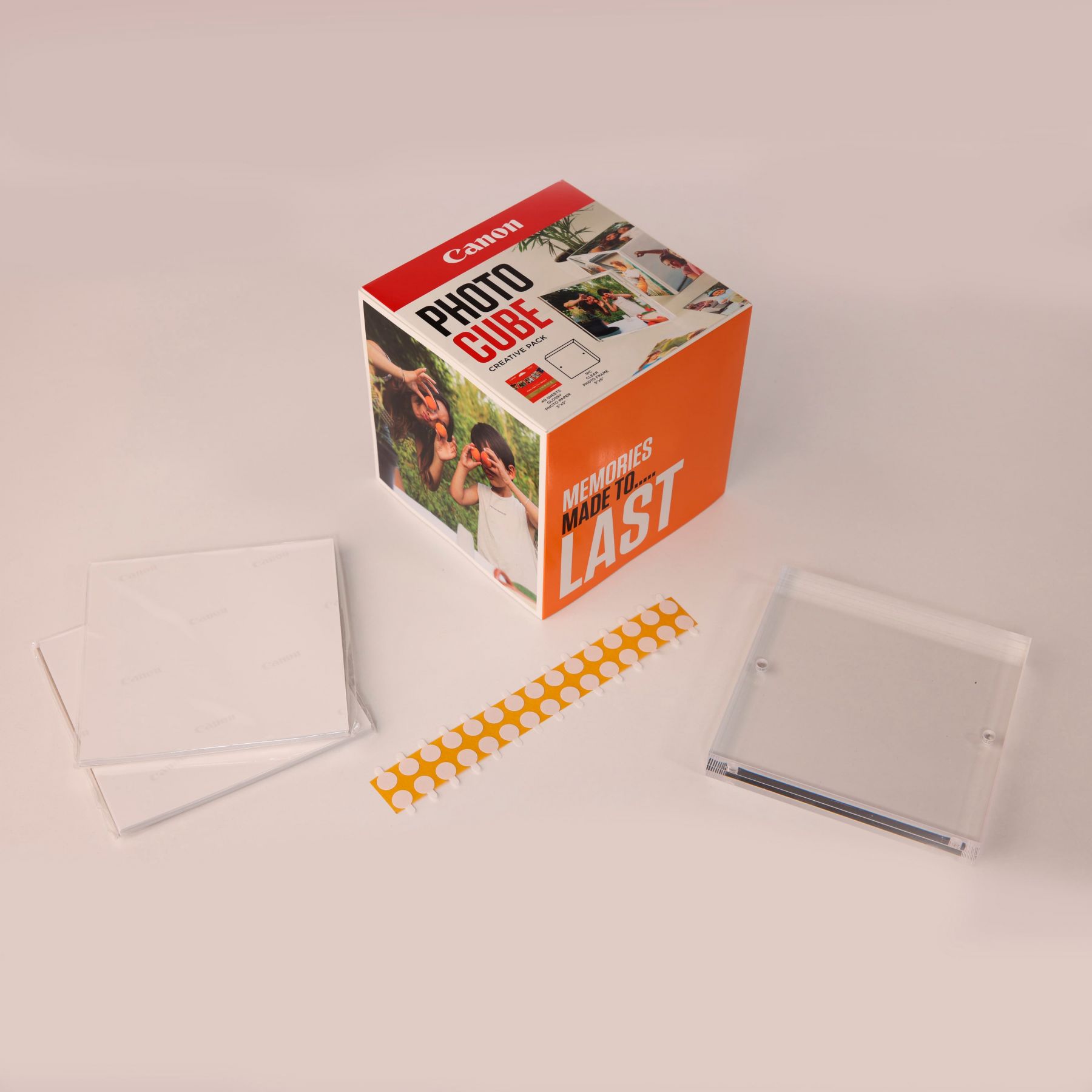 Canon Creative Pack - це набір для створення фотокубу, призначений для креативної демонстрації фотографій. Він дозволяє роздрукувати, скласти та зібрати унікальний 3D-фотокуб, щоб продемонструвати ваші улюблені спогади.