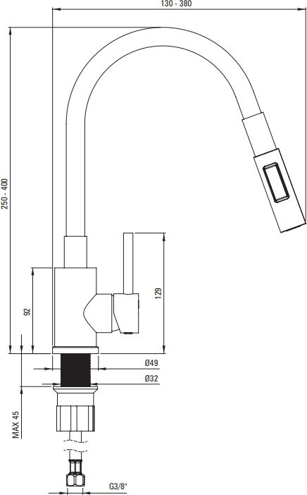 Монтажна різьба:3/8''