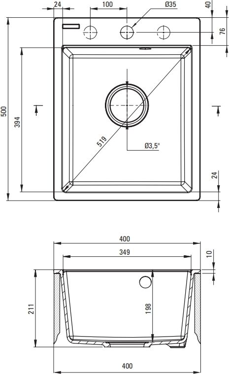 Розміри мийки:500 x 400 x 211