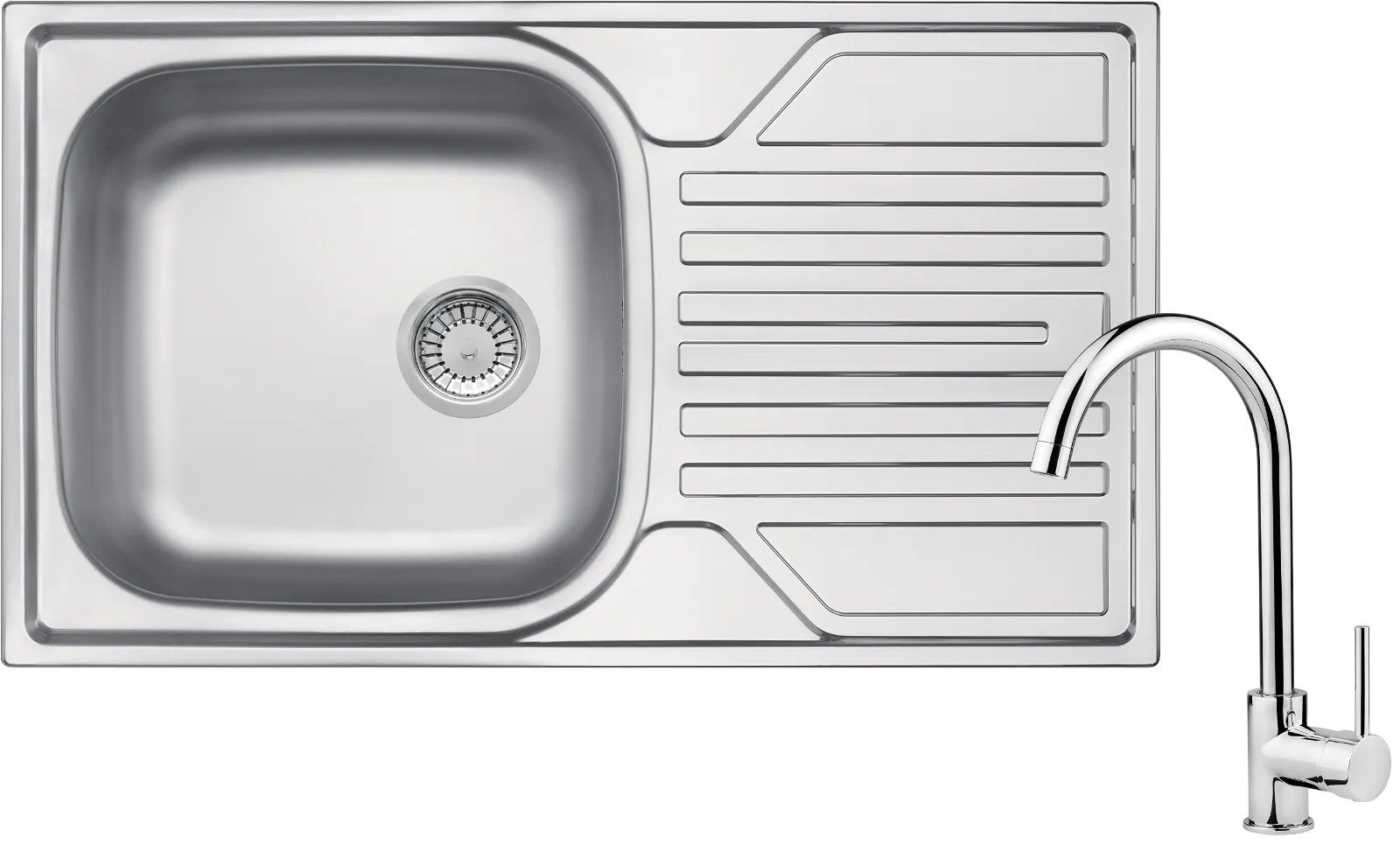 Високоміцна нержавіюча сталь. Мийка з сифоном для підключення до посудомийної машини. Природні антисептичні властивості сталі. Спеціальний засіб, безпечний для очищуваних поверхонь. З'єднувальні шланги у комплекті, 45 см. Змішувач обладнаний струменевим аератором. Монтажна втулка полегшує установку змішувача.