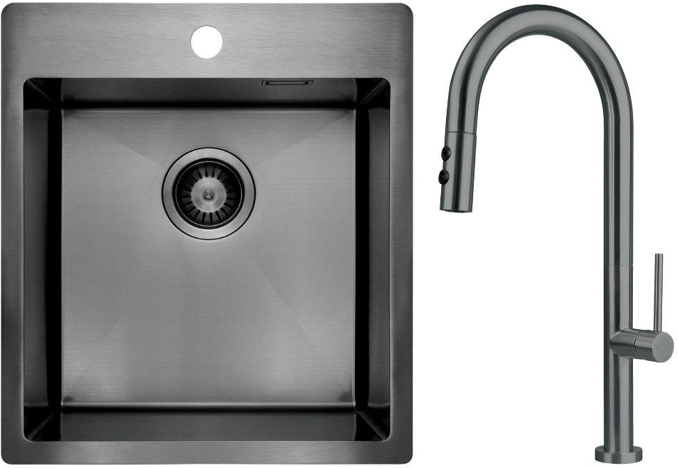 Набір для кухні Deante Olfato стальна мийка ZPO_D10A + зміш. BQO_D72M, титан