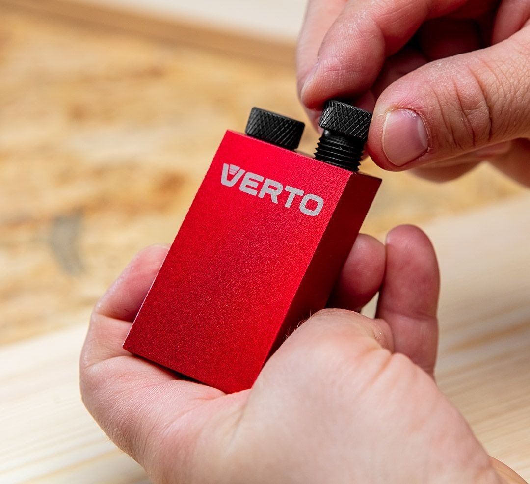 Набір для прихованого з'єднання, 14 елементів 60Х270 VERTO - це набір, призначений для прихованого з'єднання, наприклад двох дощок шляхом свердління в деревині під прямим кутом. Він складається з 14 окремих елементів, серед яких: шаблон для свердління, свердла, накладки та шурупи. Має 3 змінні розміри напрямних та регульовану глибину, завдяки якій можна підганяти параметри під матеріал.