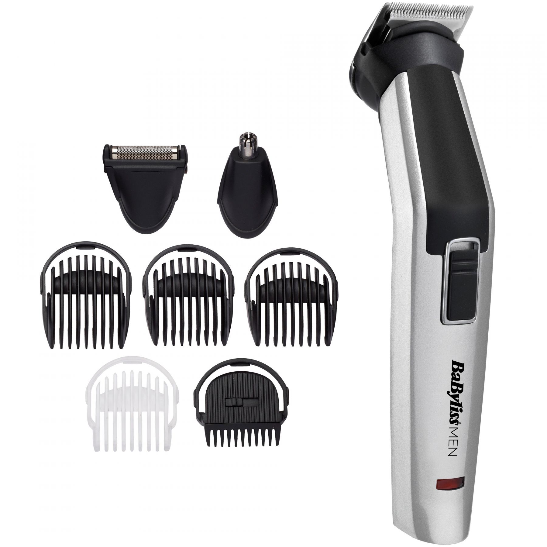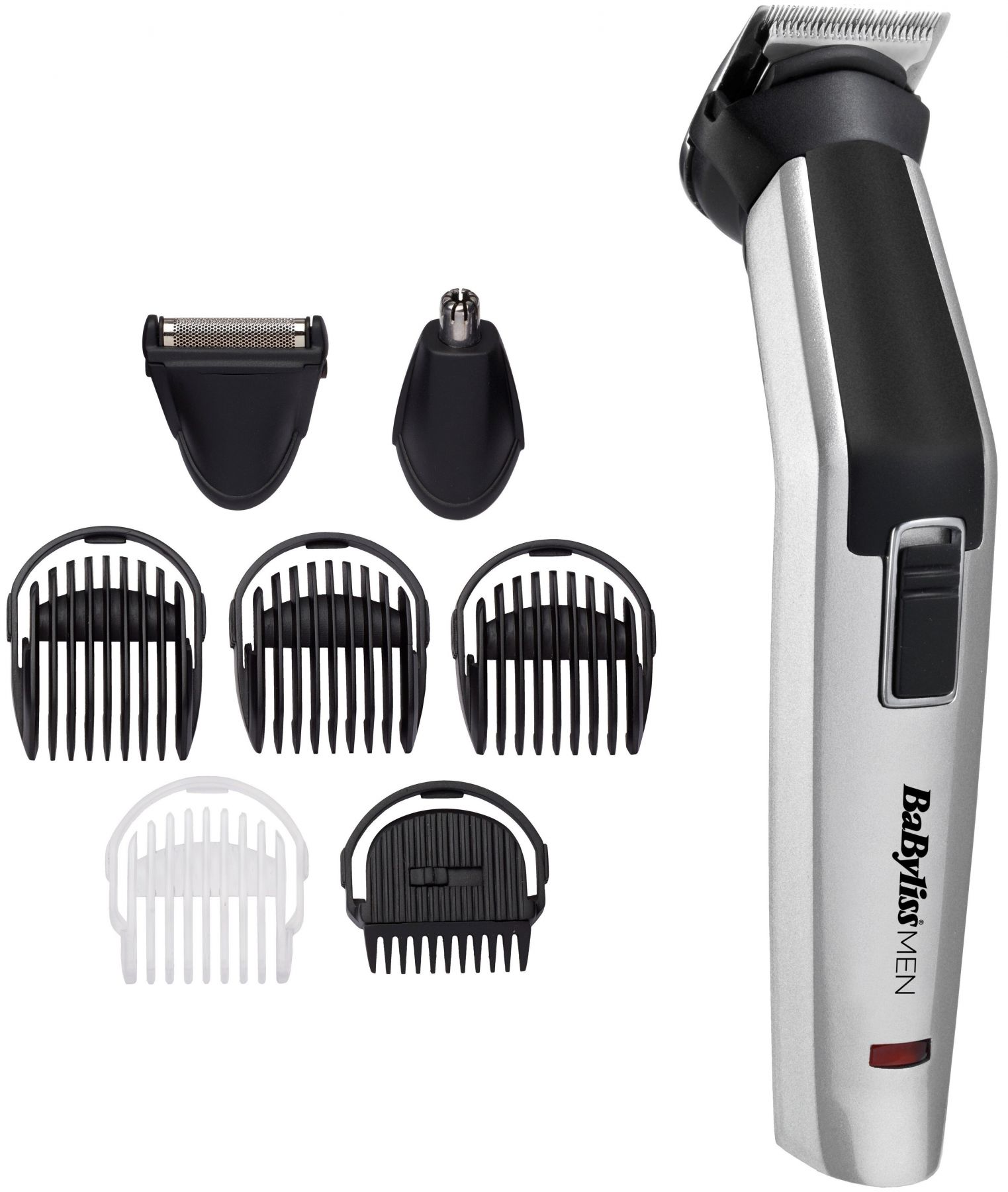 Набір для стрижки Babyliss, для бороди, вусів, голови, носа і тіла, акум., вібраційний мотор, насадок-8, чохол, сталь, сірий