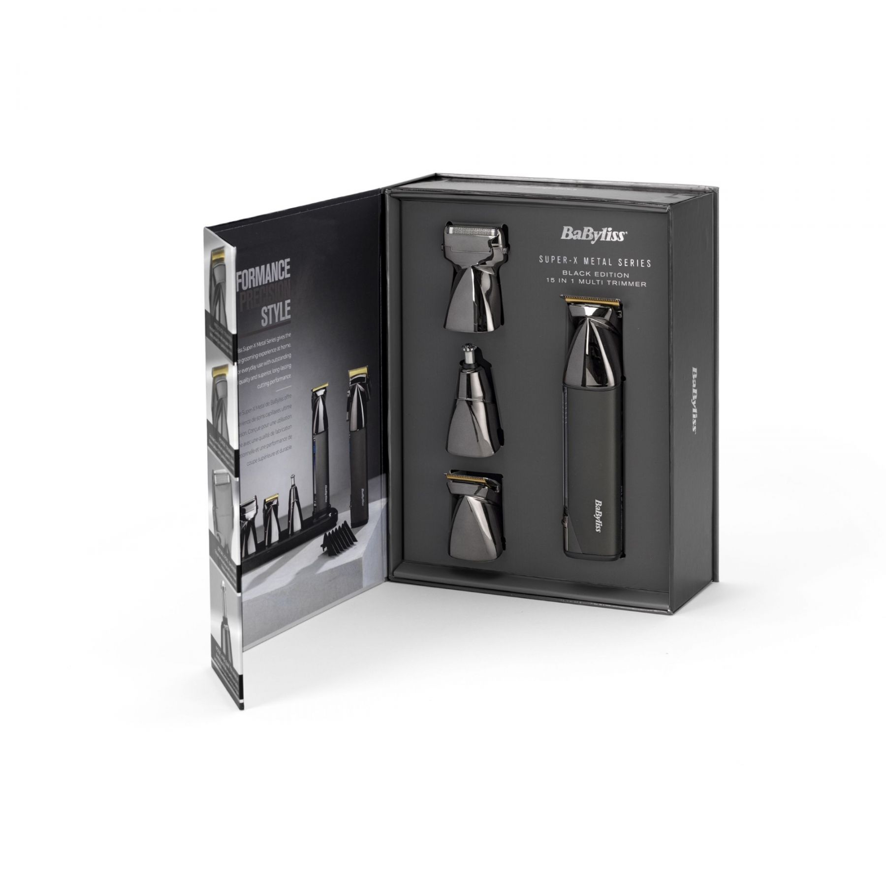Набір для стрижки Babyliss Super-X Metal Black Edition, для голови, вусів, бороди,носа і тіла, акум., насадок-15, сумка для зберігання, підставка, сталь, чорний