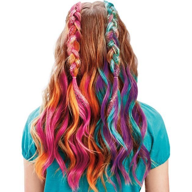 Комплектація:інструкція, 4 гребінці для волосся з крейдою, 1 гель для волосся, 1 пакетик блискіток, 3 білих пасма волосся для нарощування, 1 дошка колориста, 1 затискач з наклейкою, 1 прозорий контейнер із кришкою для змішування, 1 пензлик для нанесення, 1 ложка для змішування