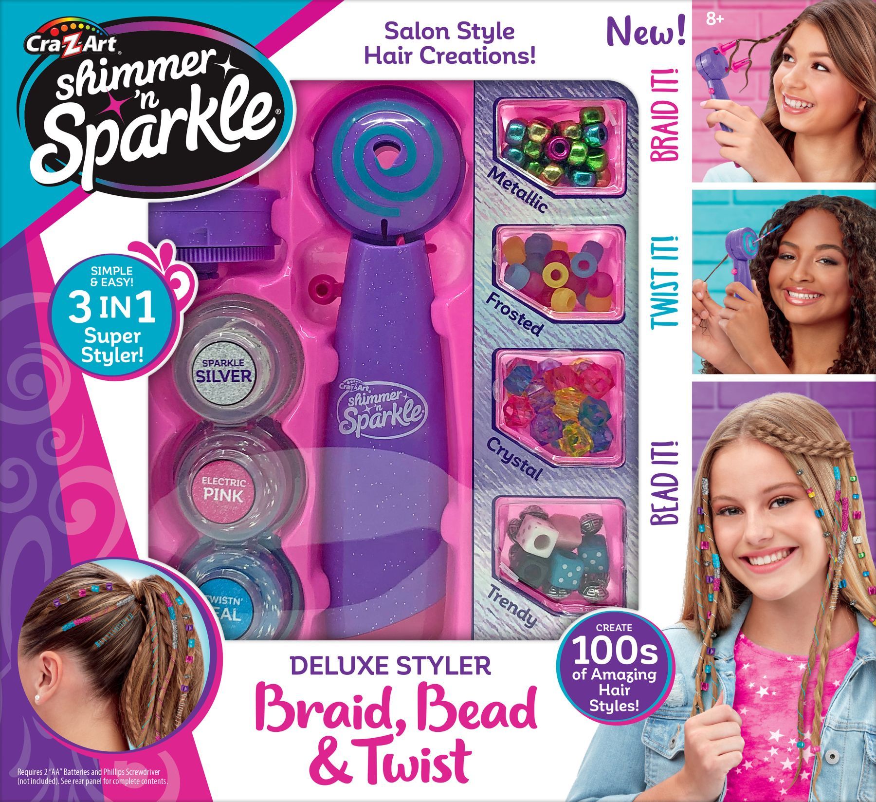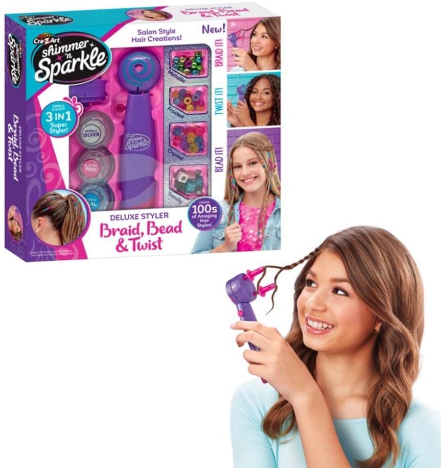 Набір для творчості Cra-Z-Art стайлер для створення зачісок використовується для плетіння, обмотування та декоративного оформлення волосся. Багатофункціональний інструмент дозволяє створювати косички, додавати кольорові шнури та намистини до пасм. Набір призначений для творчих занять і створення різних варіантів зачісок. Формат набору дозволяє експериментувати з декоративними елементами під час створення індивідуальних образів.