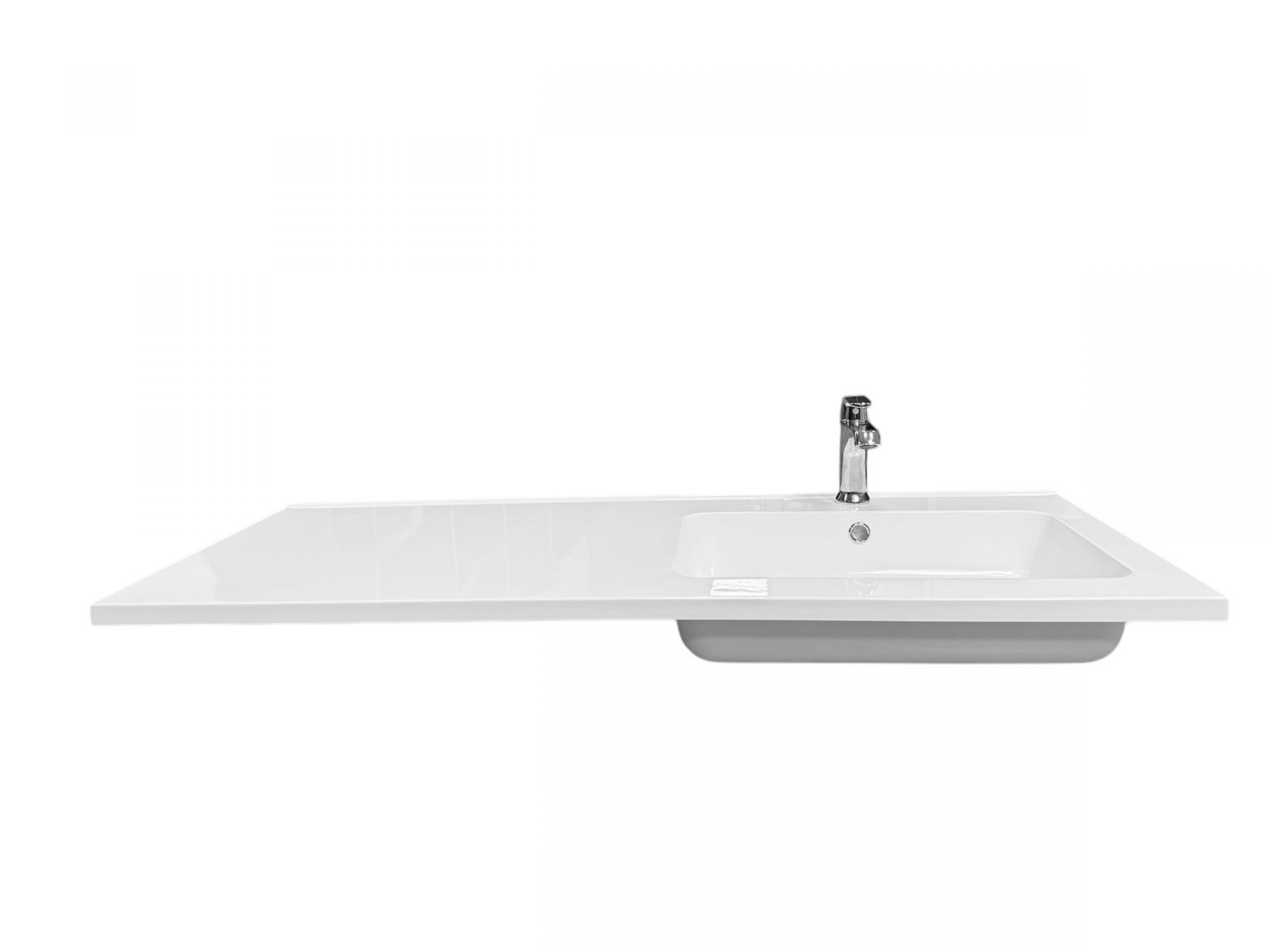 Набір для ванної кімнати Adamant FLATE 120R включає раковину зі штучного каменю, змішувач та сифон Click-Clack. Раковина прямокутної форми з чашею праворуч та крилом ліворуч має розміри 119,8 х 47,8 х 14 см, білий колір та отвір для переливу. Одноважільний змішувач оснащено аератором, металевим важелем та стаціонарним виливом з хромовим покриттям. Пластиковий сифон забезпечує мокрий гідрозатвор, автоматичне відкриття зливу та функцію переливу.
