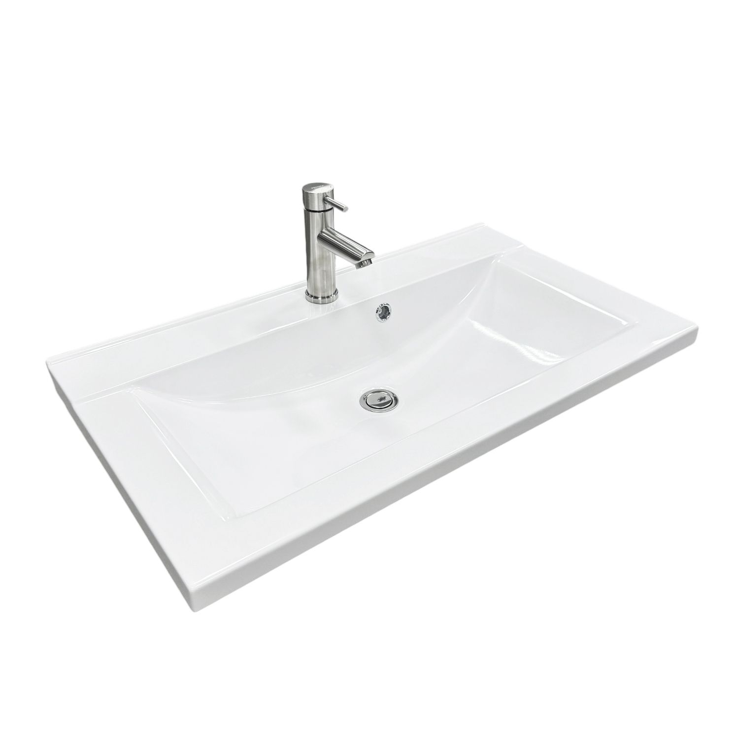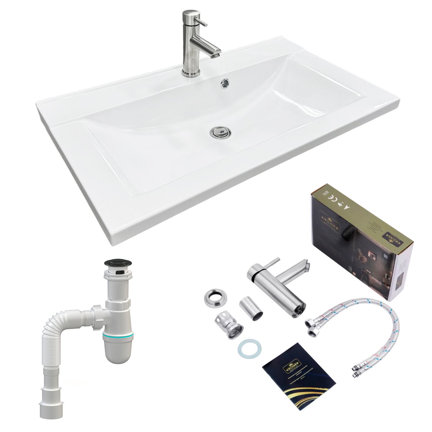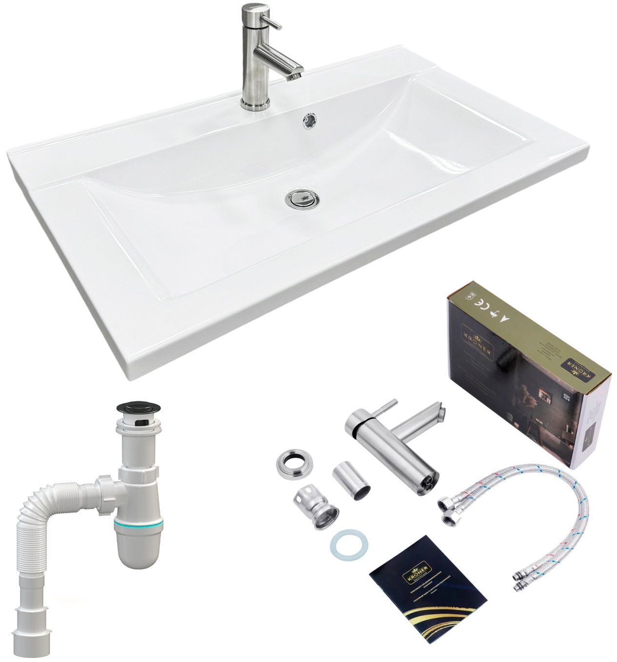 Набір для ванної кімнати, раковина, умивальник Adamant QUANTO 80, штучний камінь, прямокут., з сифоном Click-Clack + змішувач