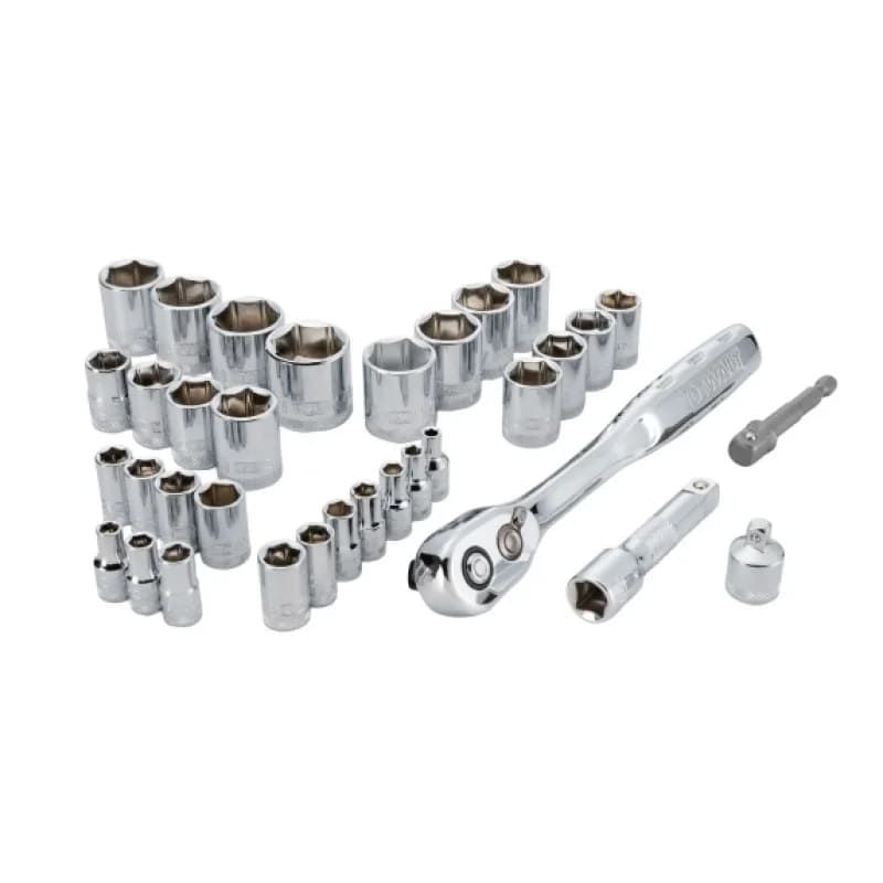 Набір головок DeWALT DWMT45034-0 поєднує два посадкові квадрати 1/4" і 3/8" для слюсарних, монтажних і автомобільних робіт. Комплект на 34 предмети містить метричні та дюймові розміри для роботи з різними типами кріплення. Храповий механізм на 72 зуби забезпечує точну роботу в обмеженому просторі. Для зберігання та транспортування передбачено міцний пластиковий кейс.