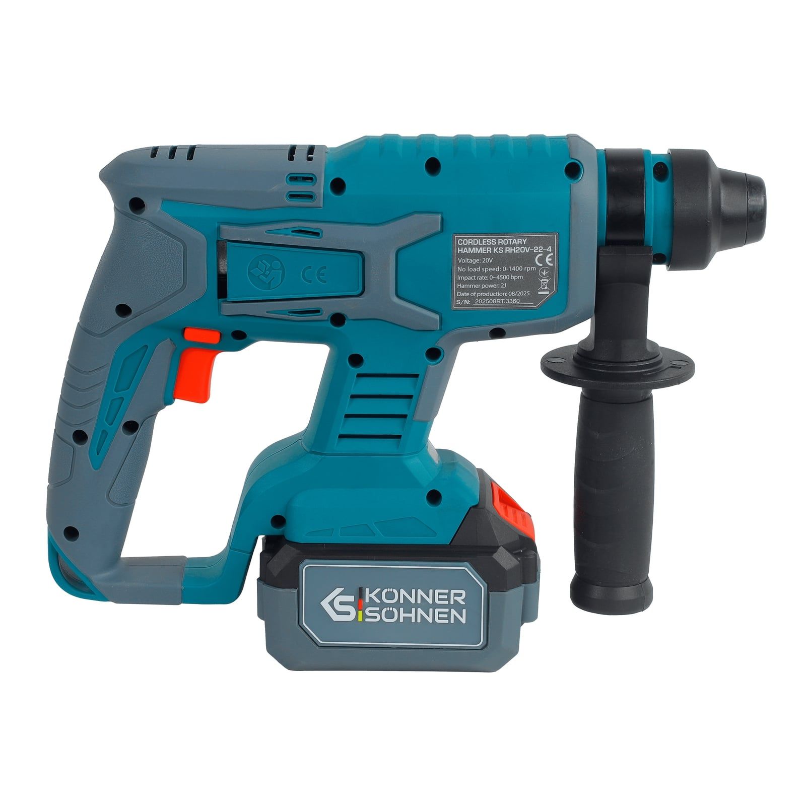 Набір із трьох акумуляторних інструментів Konner&Sohnen KS RHAGD 20V SET 3 20В дриль, шліфмашина кутова, перфоратор, швидкий ЗП 4.5А акб 2х4А·год сумка 7.5кг