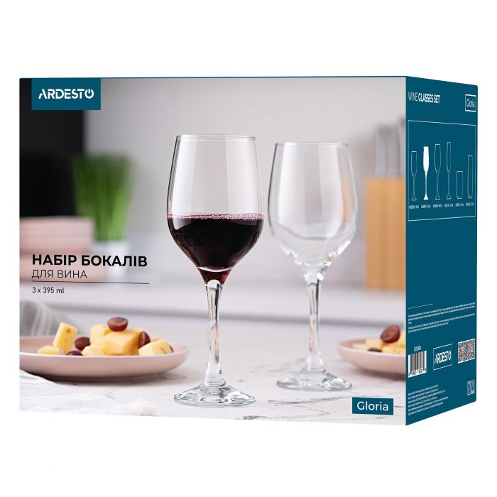 Набір келихів для вина Ardesto Gloria 395мл, 3шт, скло, прозорий