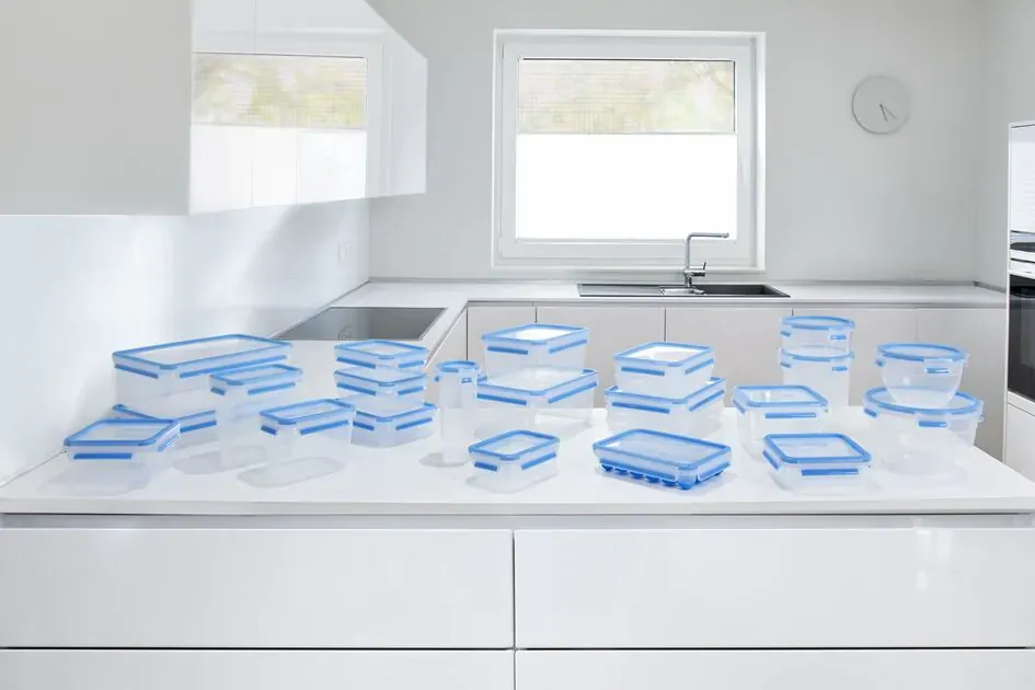 Контейнери Tefal Master Seal – оптимальне рішення для зберігання та транспортування харчових продуктів. Завдяки інноваційній системі закриття кришки з 4 затискачами ці контейнери забезпечують герметичність і 100% герметичність. Вони легко відкриваються і закриваються, що робить їх зручними для щоденного використання. Ємності не тільки герметичні, але й гігієнічні, оскільки вони усувають щілини, де можуть накопичуватися мікроби. Виготовлені з міцного пластику без шкідливих речовин, таких як BPA, вони безпечні для зберігання їжі. Ці контейнери є універсальними, придатними для морозильника, мікрохвильової печі та посудомийної машини з температурним діапазоном від -40°C до +110°C. Зберігайте свою їжу свіжою та впорядкованою за допомогою контейнерів Tefal MASTERSEAL FRESH