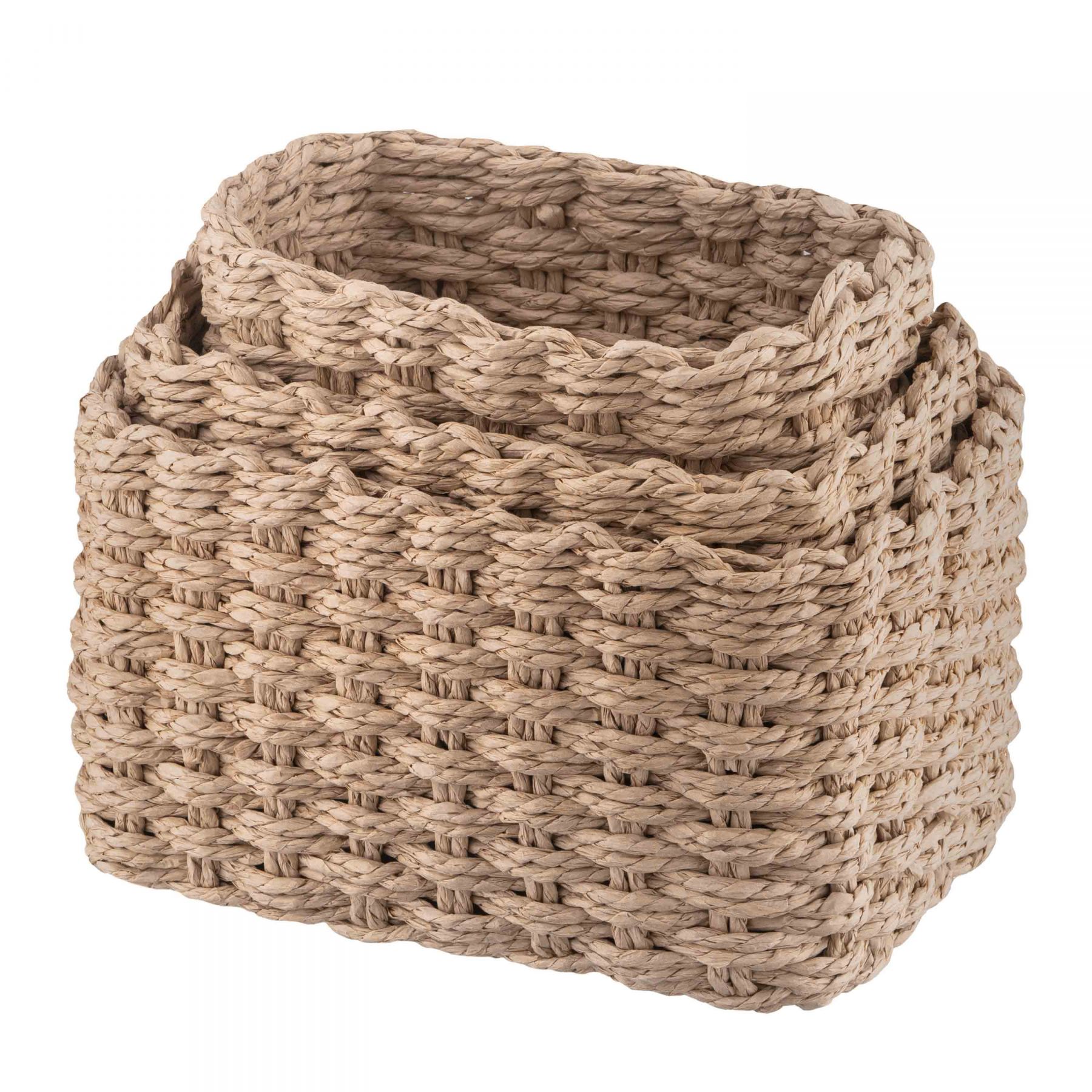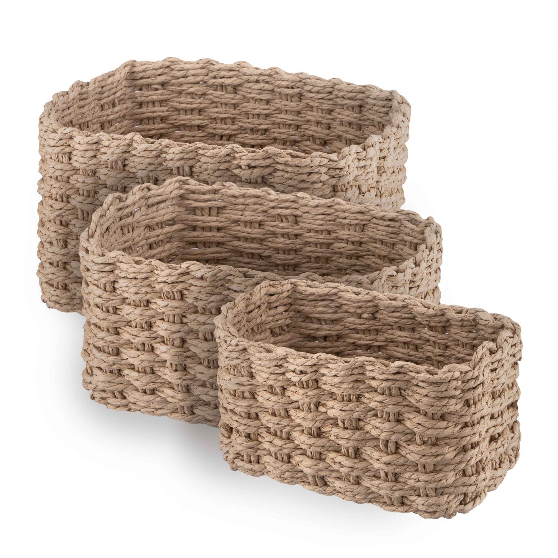 Набір кошиків плетених для зберігання Ardesto Prestigio (3.3/2.2/1.4л), 3 предмети, паперовий шпагат, бежевий