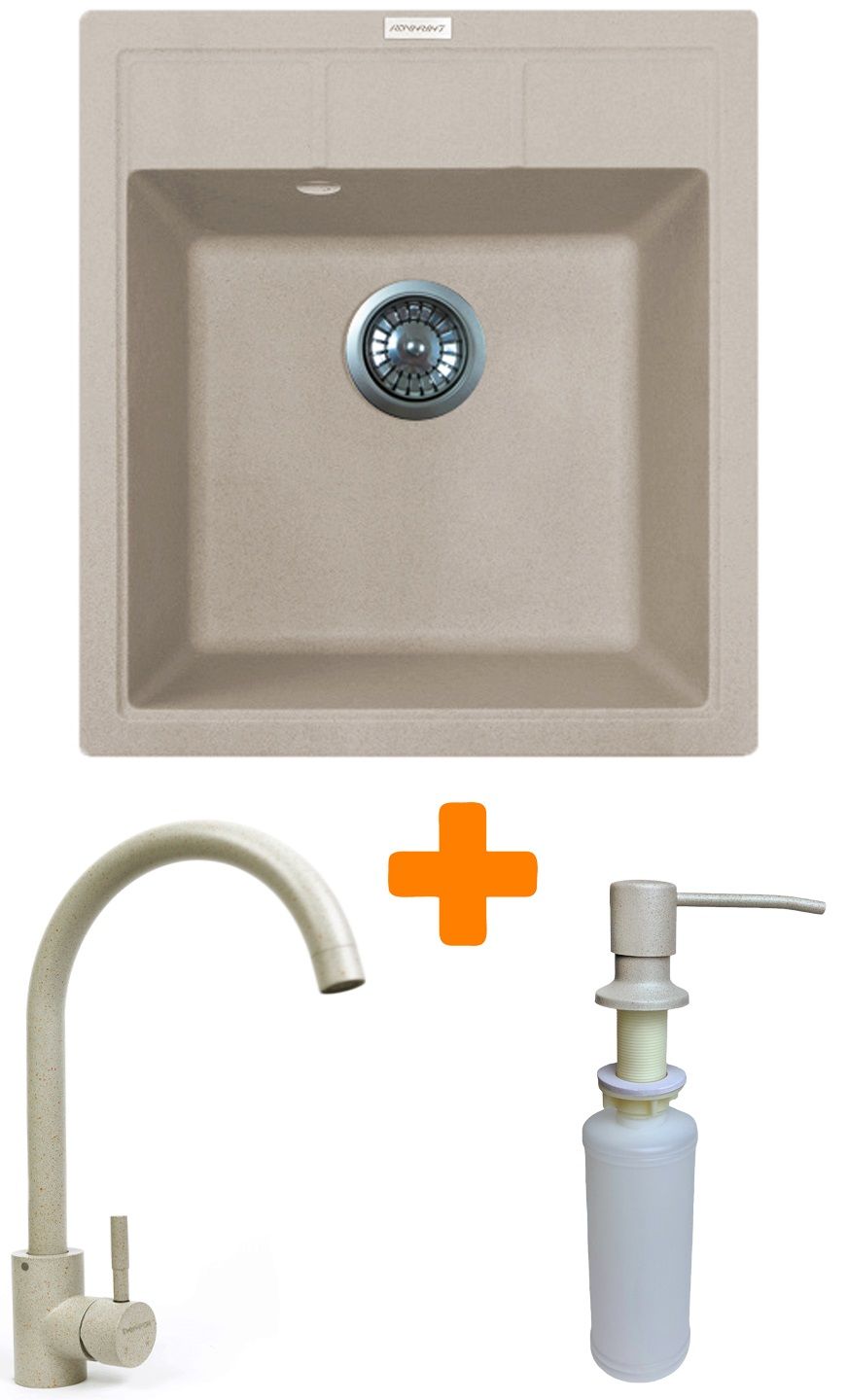 Набір Adamant Brick поєднує мийку зі штучного каменю, зручний кухонний змішувач та вбудований дозатор мийного засобу. Глибока квадратна чаша створює комфорт під час щоденного використання та легко очищується завдяки непористій структурі. Змішувач із нержавіючої сталі має плавний хід та можливість обертання виливу. Дозатор встановлюється у мийку або стільницю та дозволяє подавати мийний засіб одним натисканням. Це готовий комплект для сучасної та функціональної кухні.