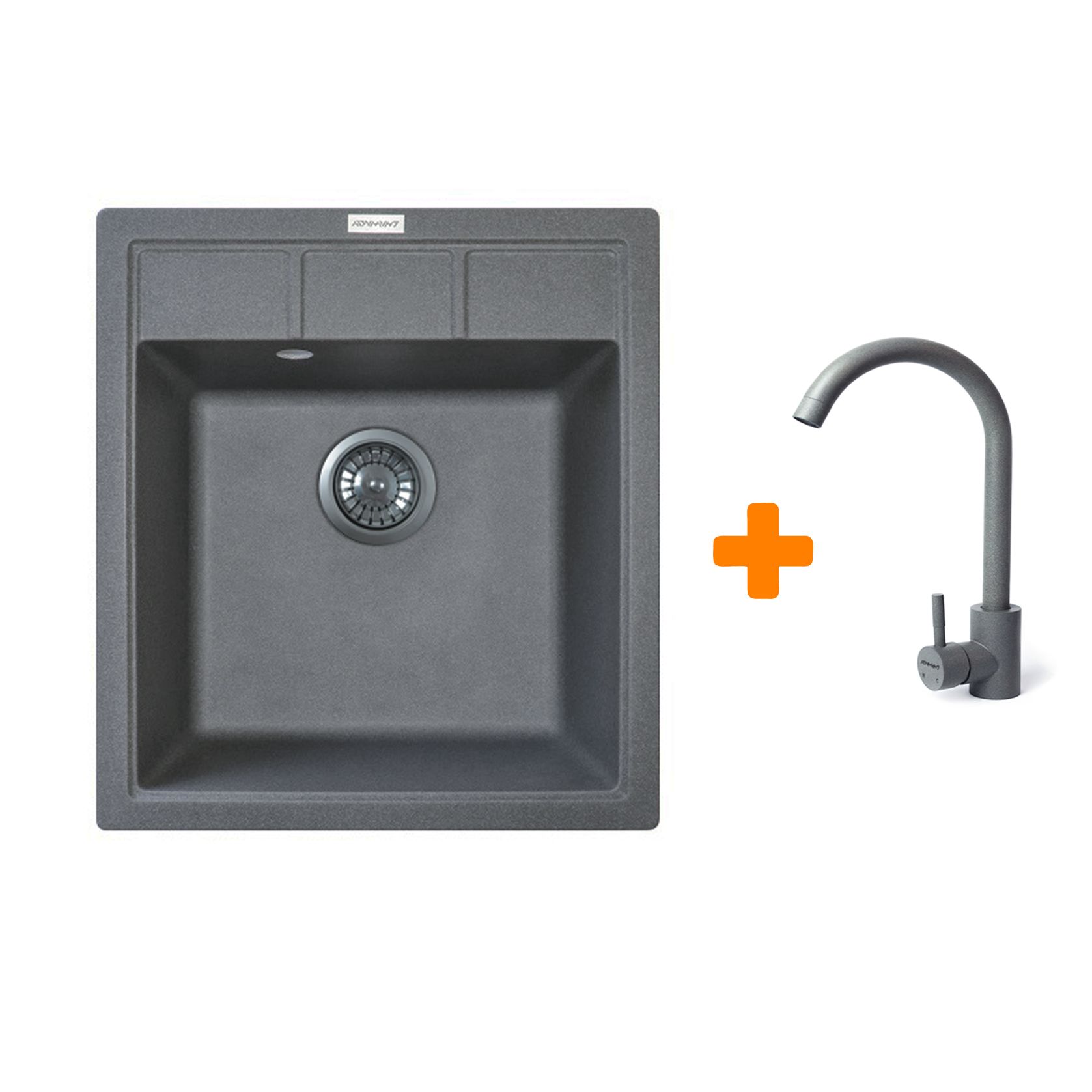 Набір кухонна Adamant Brick, штучний камінь, квадрат, без крила, 460x515x200мм, чаша - 1, врізна, сірий + змішувач